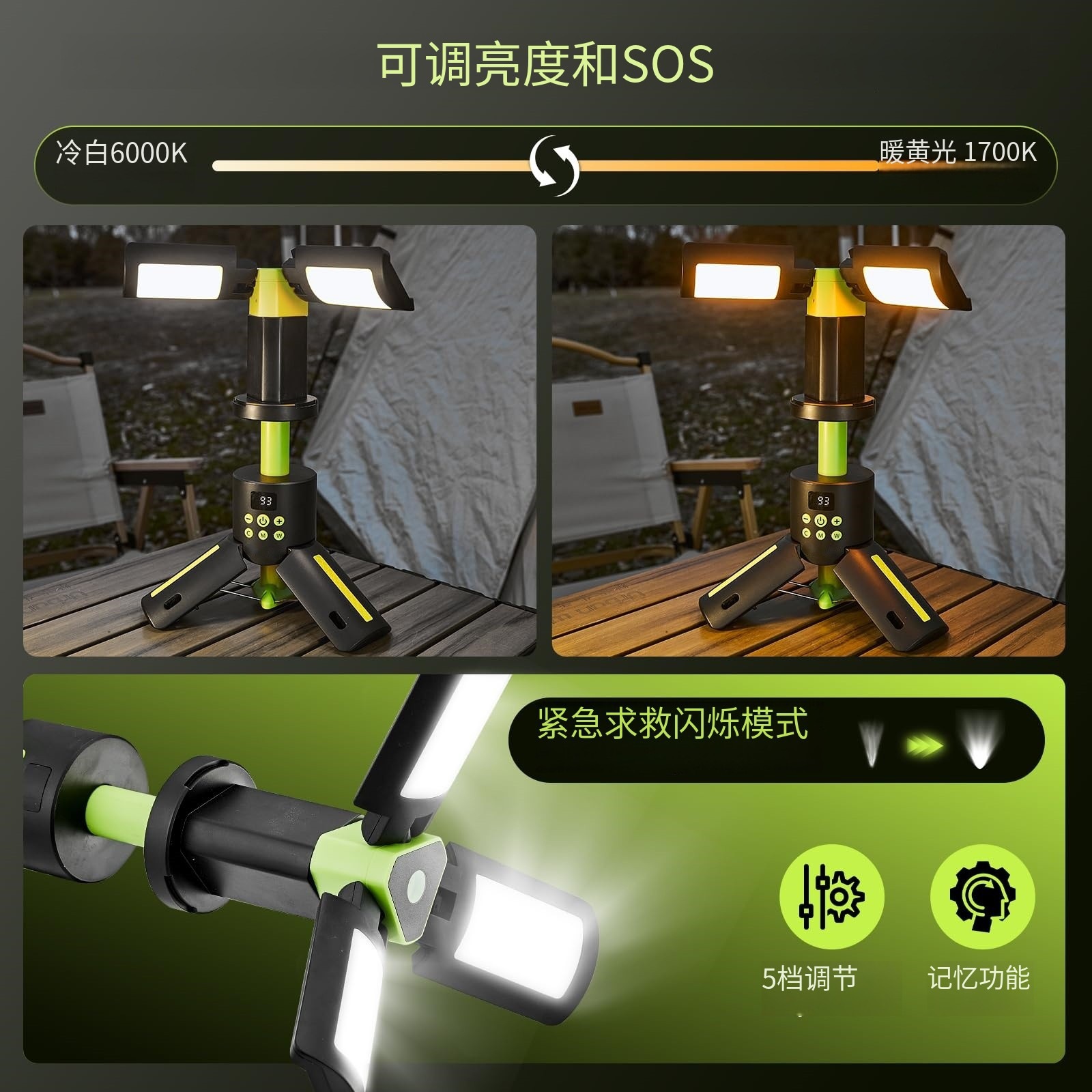 캠핑 조명, 실외 플러그인 없는 텔레스코픽 캠핑 조명, 배터리 수명, 서치라이트, 휴대용 캠핑 조명, 실내 및 실외 따뜻한 조명