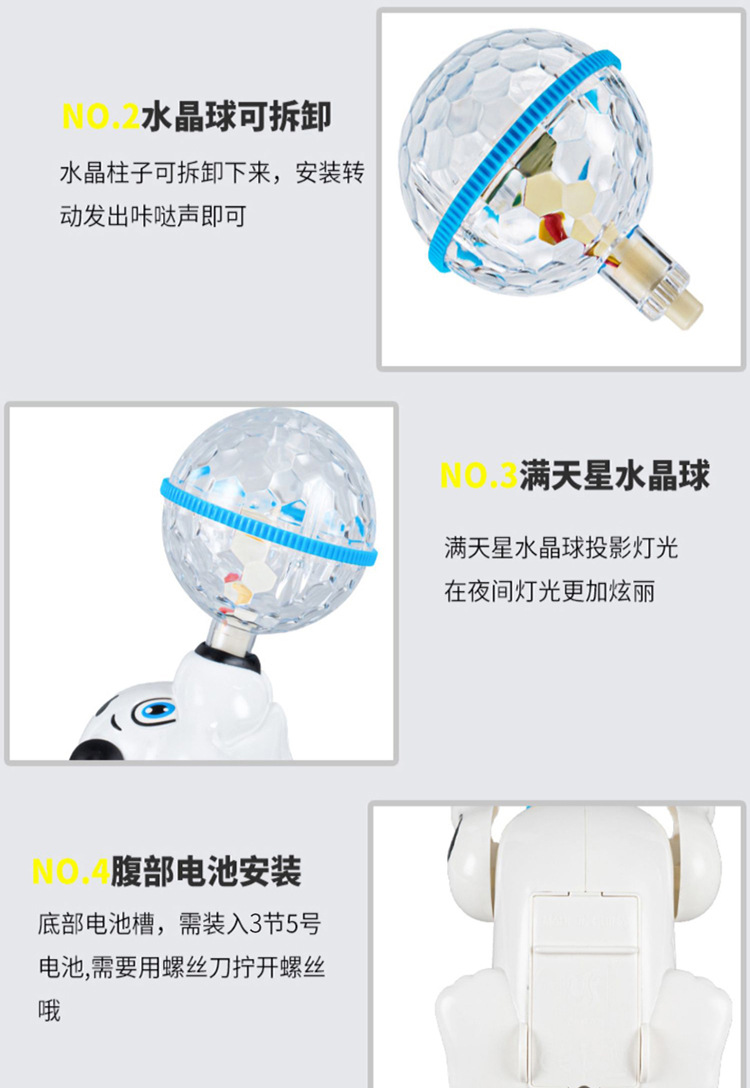 전기 노래하고 춤추는 공 회전 스턴트 소리와 빛으로 빛나는 강아지 어린이 소년 소녀 야시장 노점 장난감스토어 가기
