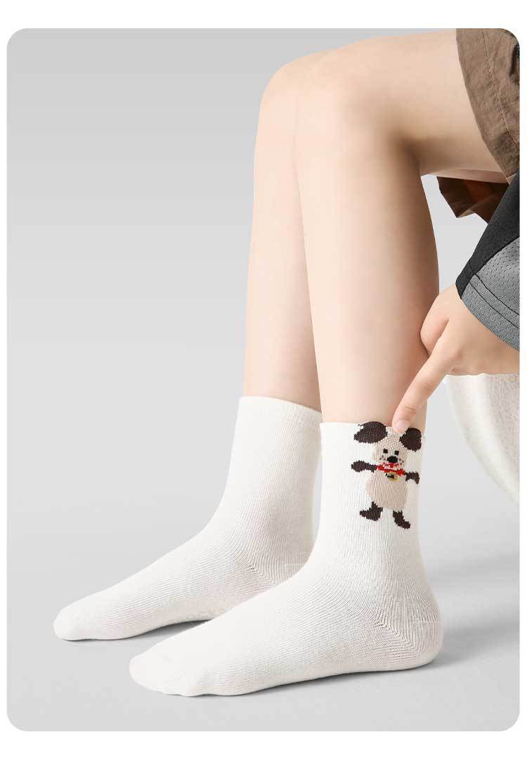 P003 어린이 양말 도매 2025 가을, 겨울 얇은 만화 강아지 양말 면화 뼈없는 땀 흡수 소년 양말