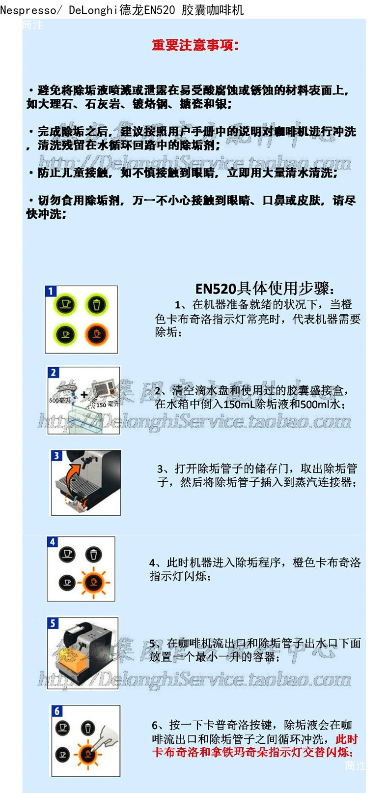 EN520 NESPRESSO 캡슐 커피 머신 500ml 세척액 유지 보수 및 스케일 제거제는 5회 사용 가능