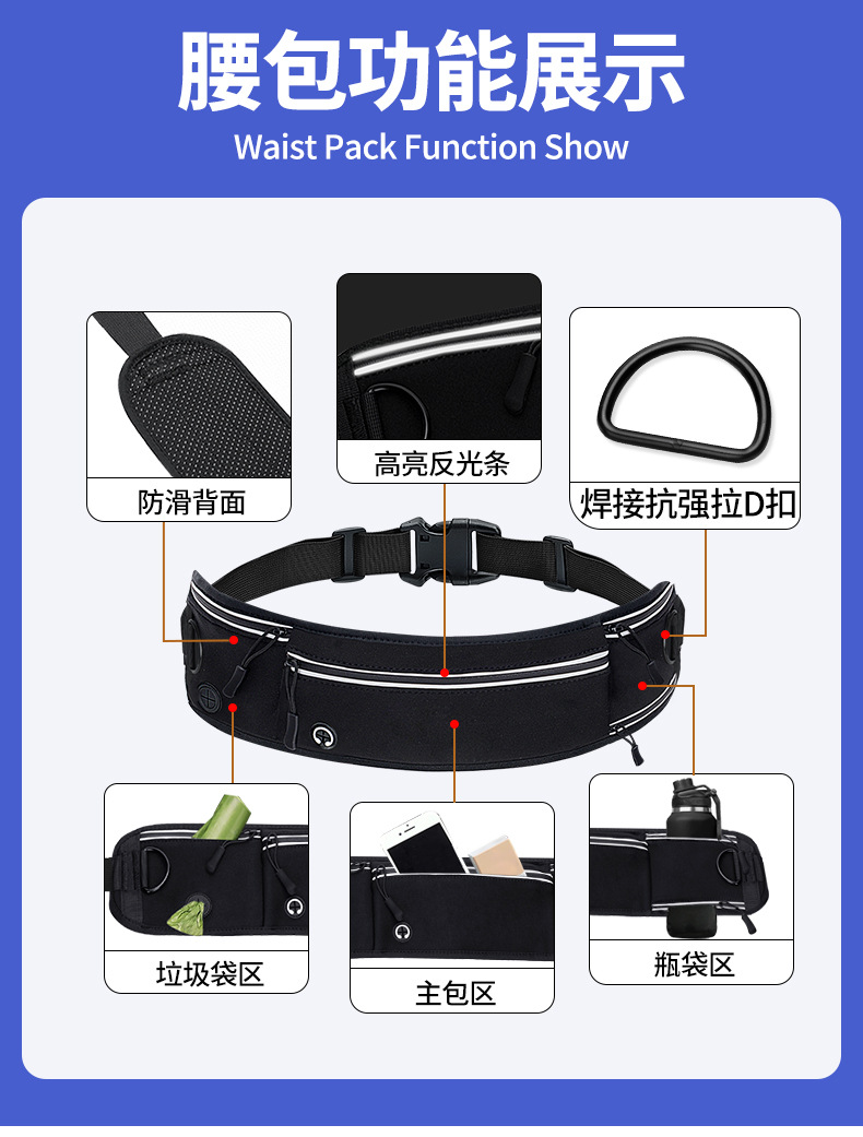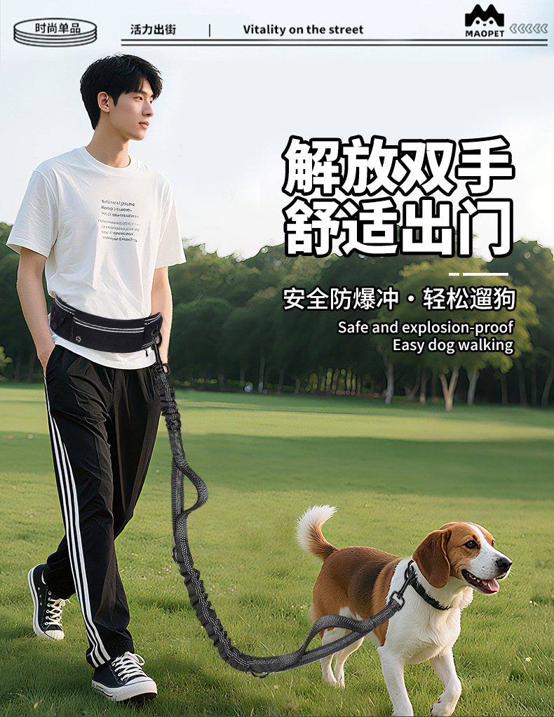 공장 직접 판매 애완 동물 스포츠 허리 가방 실행 다기능 개 가죽 끈 방폭형 개폐식 핸즈프리 개 가죽 끈
