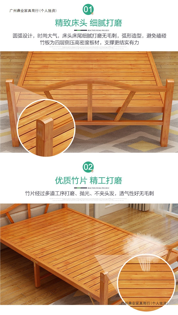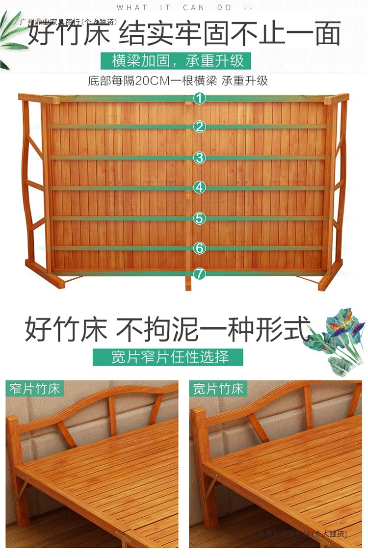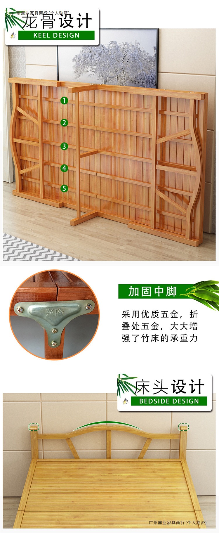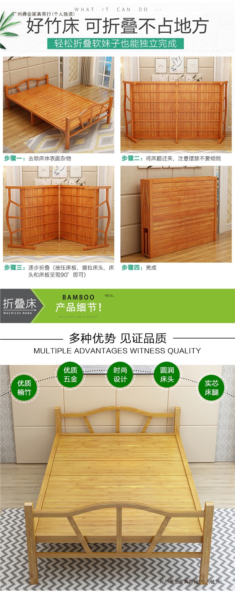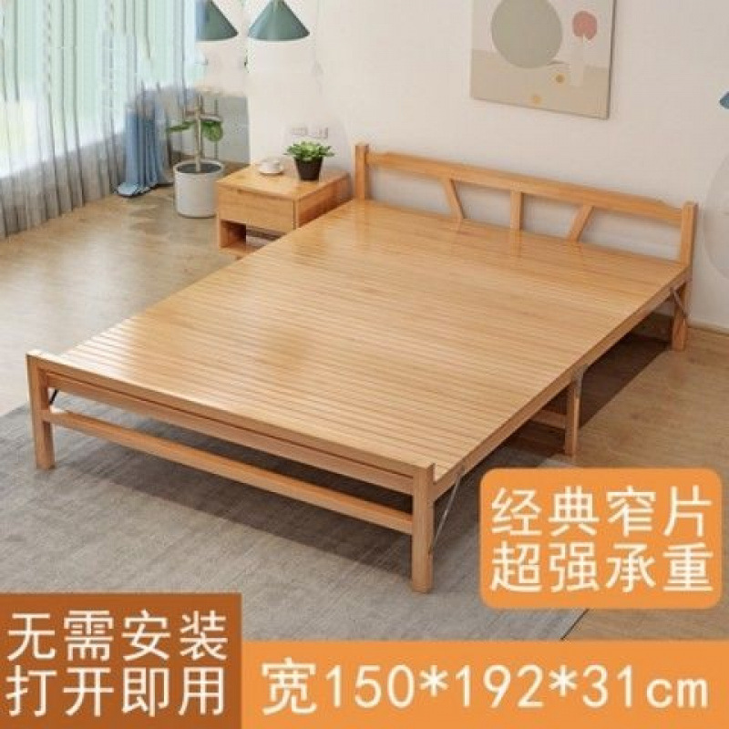 대나무 침대 접이식 침대 싱글 더블 간단한 가정용 성인 대나무 시트 냉각 침대 1.2m 임대 하드 보드 나무 침대스토어 가기