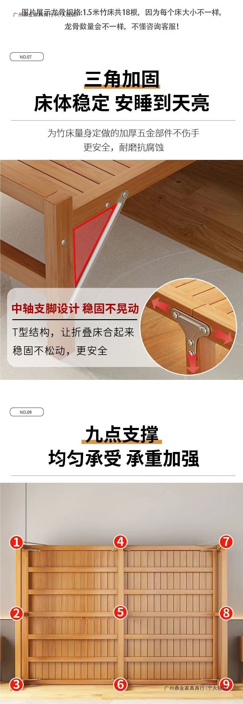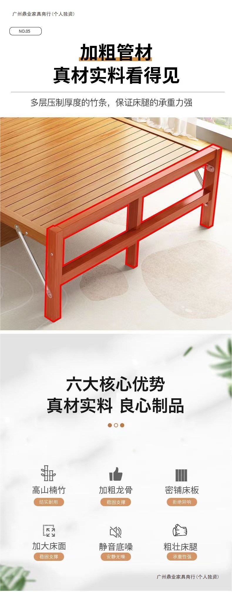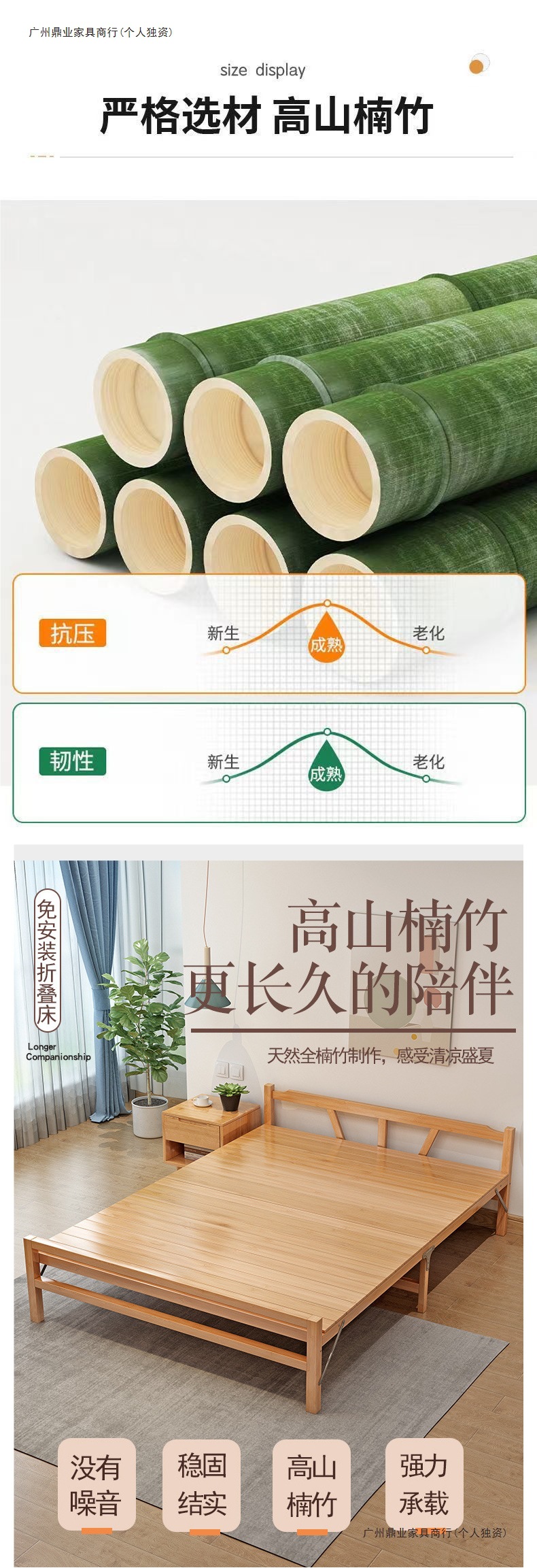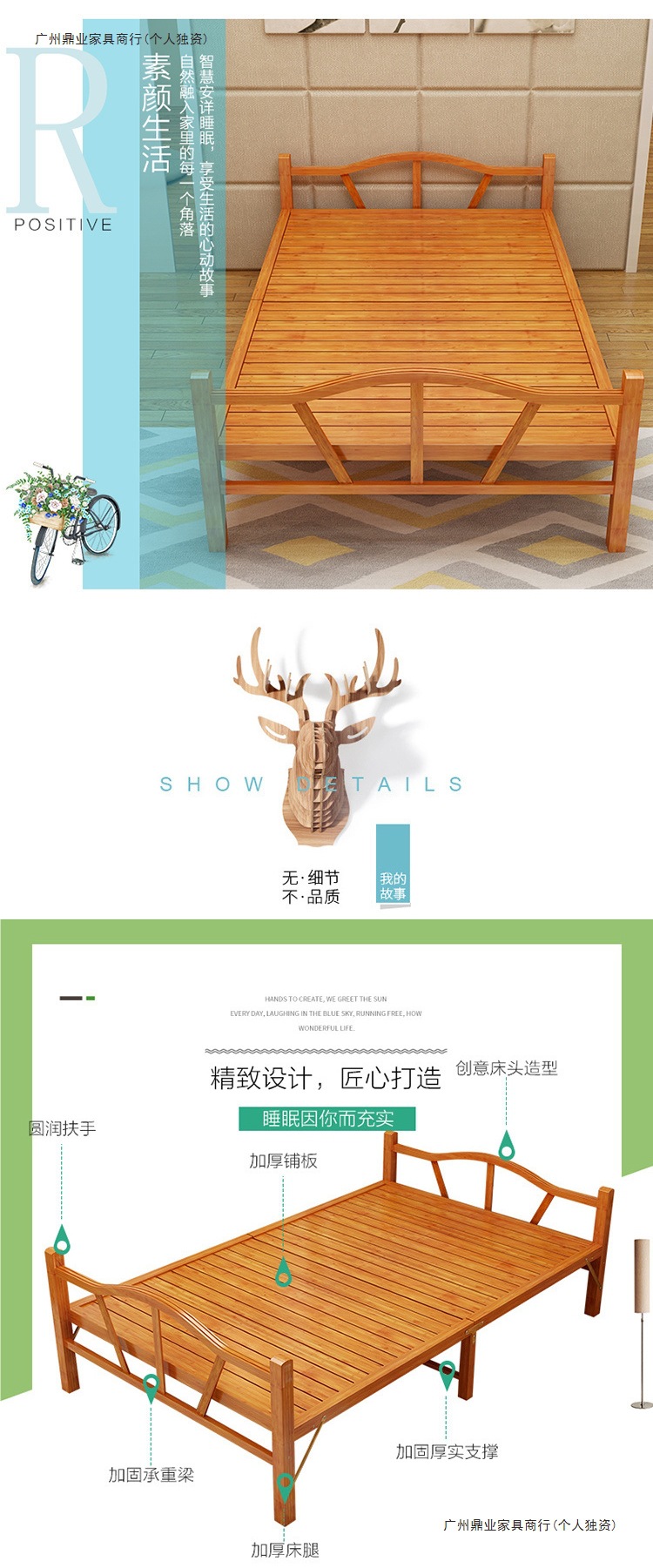 대나무 침대 접이식 침대 싱글 더블 간단한 가정용 성인 대나무 시트 냉각 침대 1.2m 임대 하드 보드 나무 침대스토어 가기