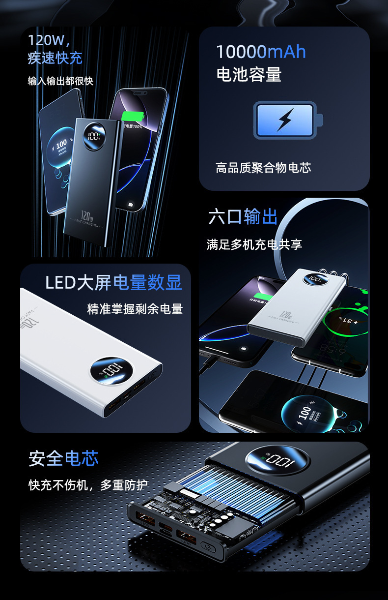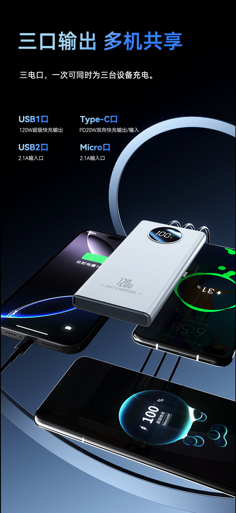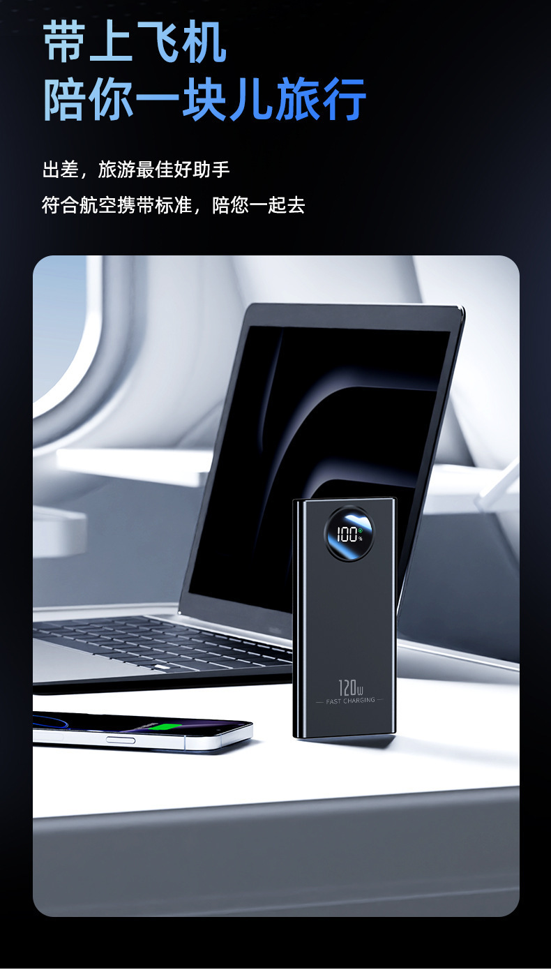 국경 간 맞춤형 120W 초대형 용량 초고속 충전 보조베터리, 얇고 휴대성이 뛰어난 범용 선물 모바일 전원 공급 장치