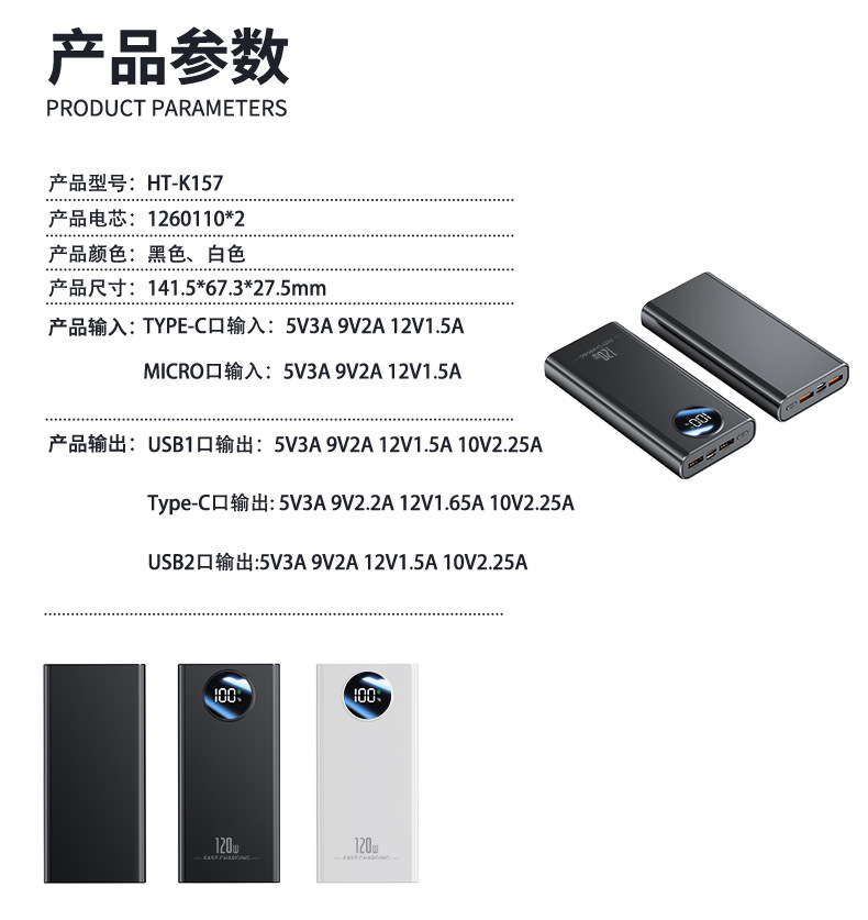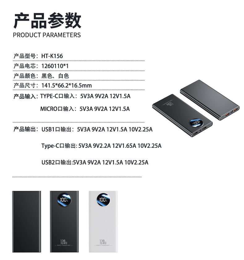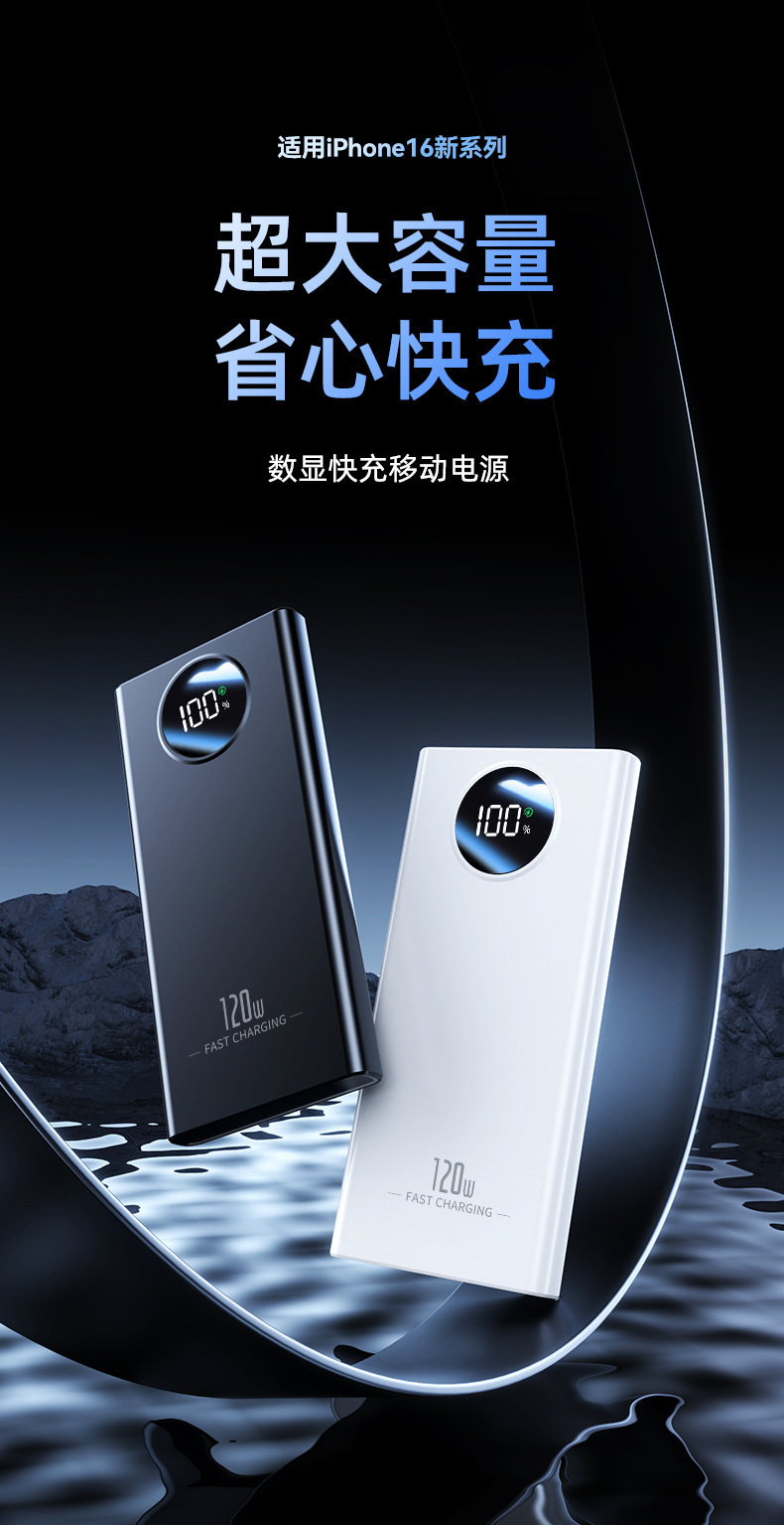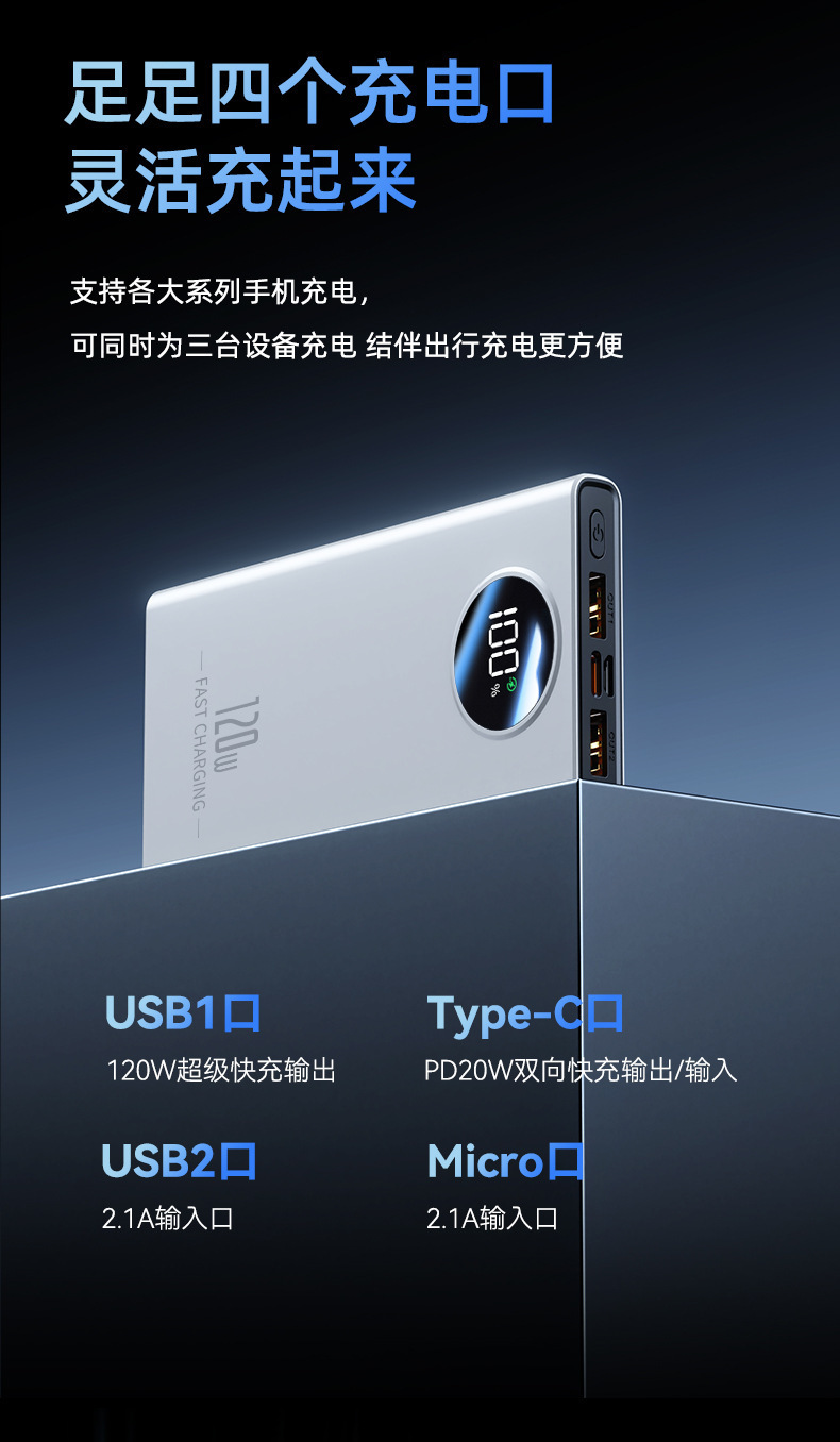 국경 간 맞춤형 120W 초대형 용량 초고속 충전 보조베터리, 얇고 휴대성이 뛰어난 범용 선물 모바일 전원 공급 장치