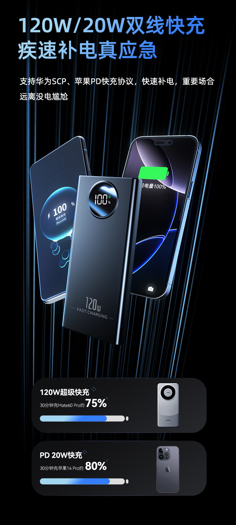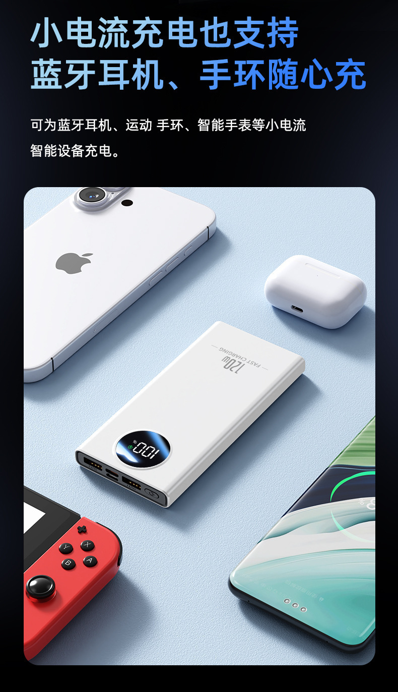 국경 간 맞춤형 120W 초대형 용량 초고속 충전 보조베터리, 얇고 휴대성이 뛰어난 범용 선물 모바일 전원 공급 장치스토어 가기