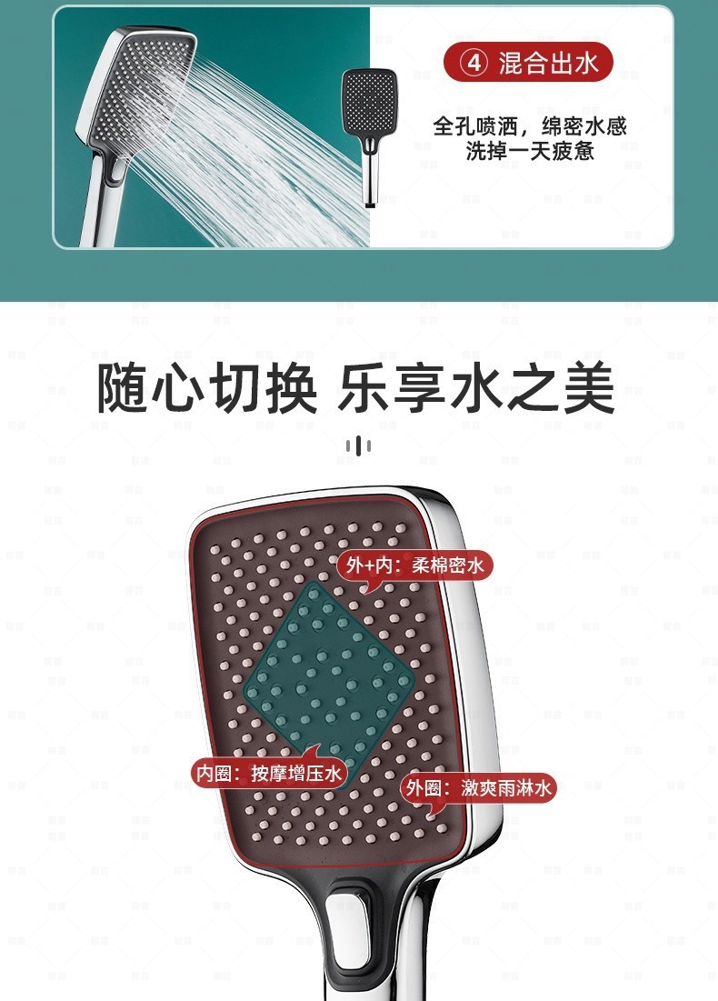 강력한 가압 및 고압 욕실 샤워, 대용량 욕실 히터, 샤워 헤드, 가정용 긴 손잡이