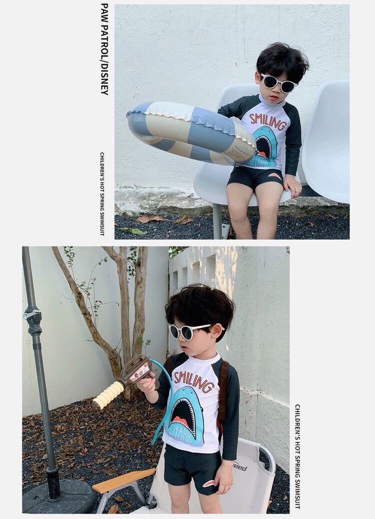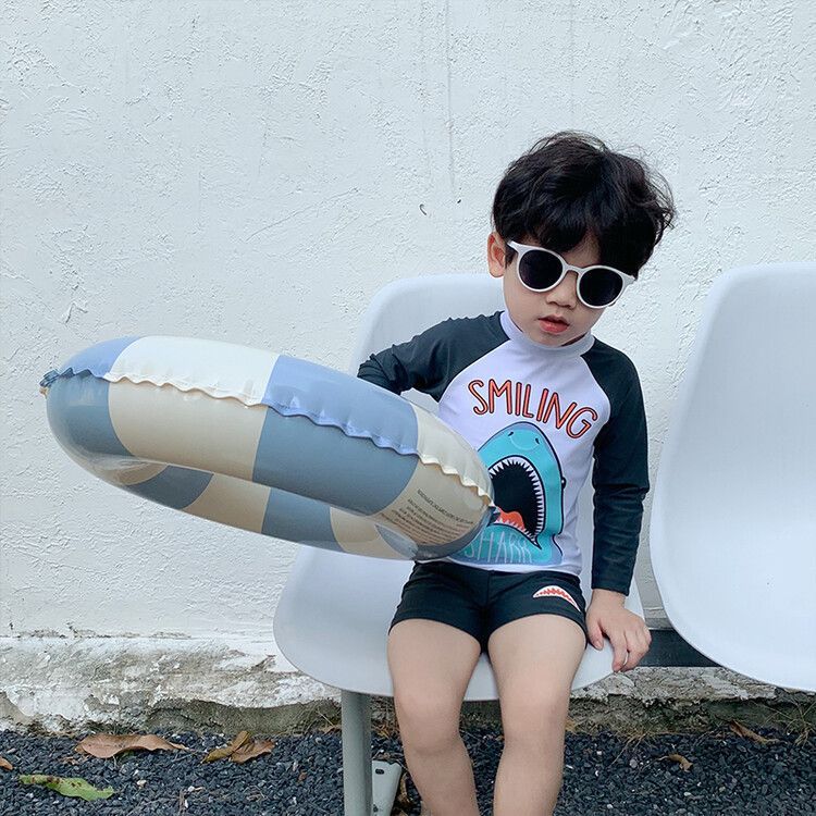 한국어 버전 어린이 휴가 자외선 차단제 긴팔 수영복 반바지 수영복 아기 소년 속건성 상어 스플릿 수영복스토어 가기