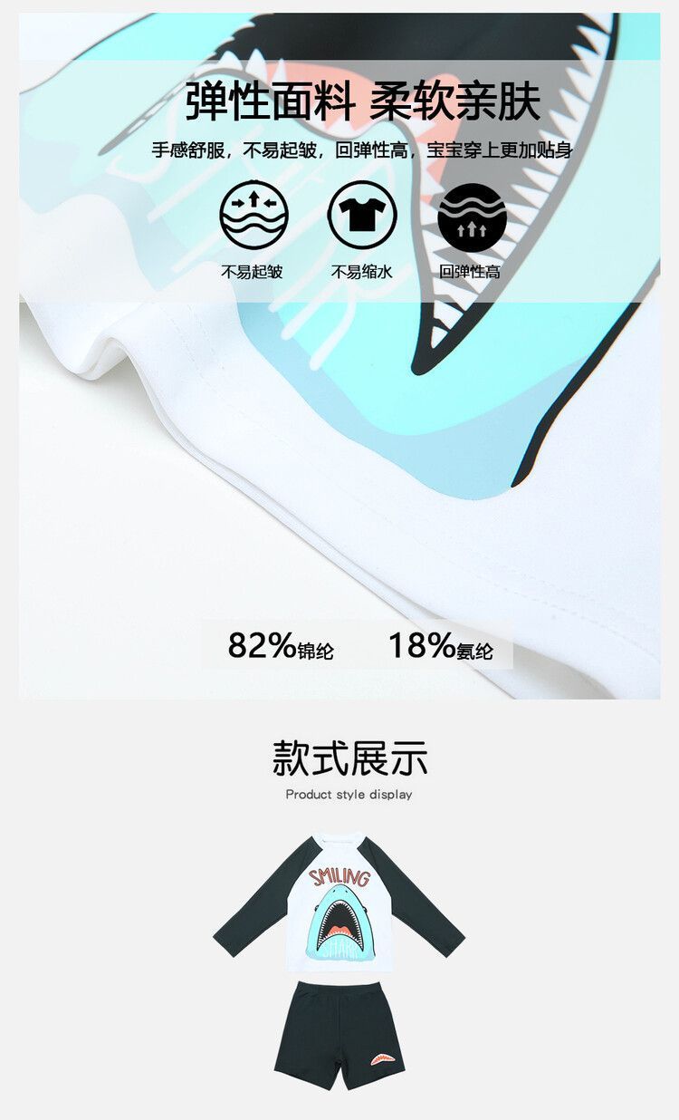 한국어 버전 어린이 휴가 자외선 차단제 긴팔 수영복 반바지 수영복 아기 소년 속건성 상어 스플릿 수영복