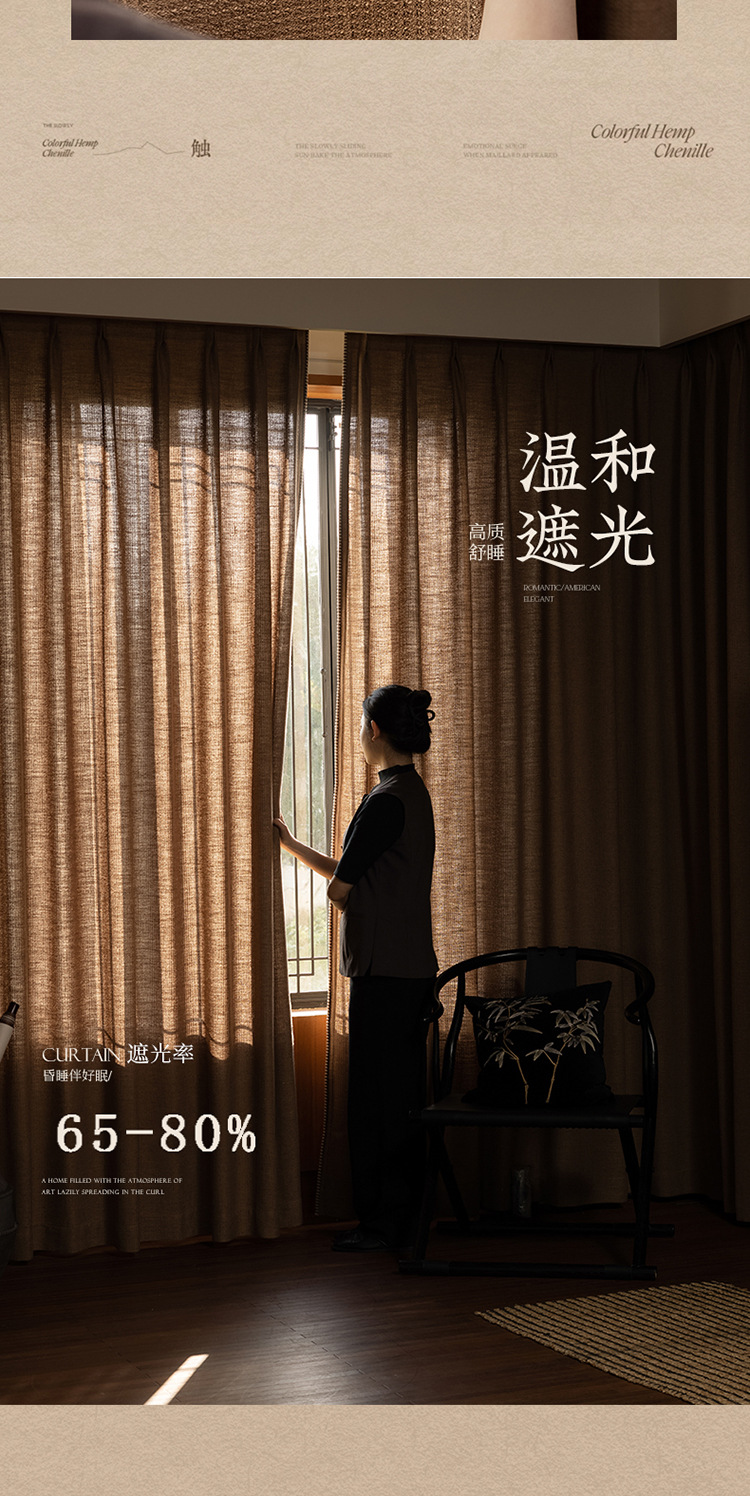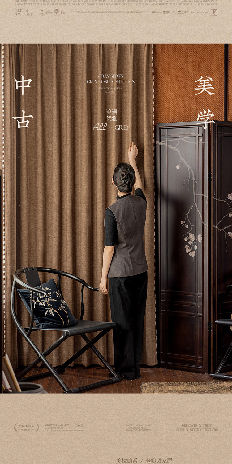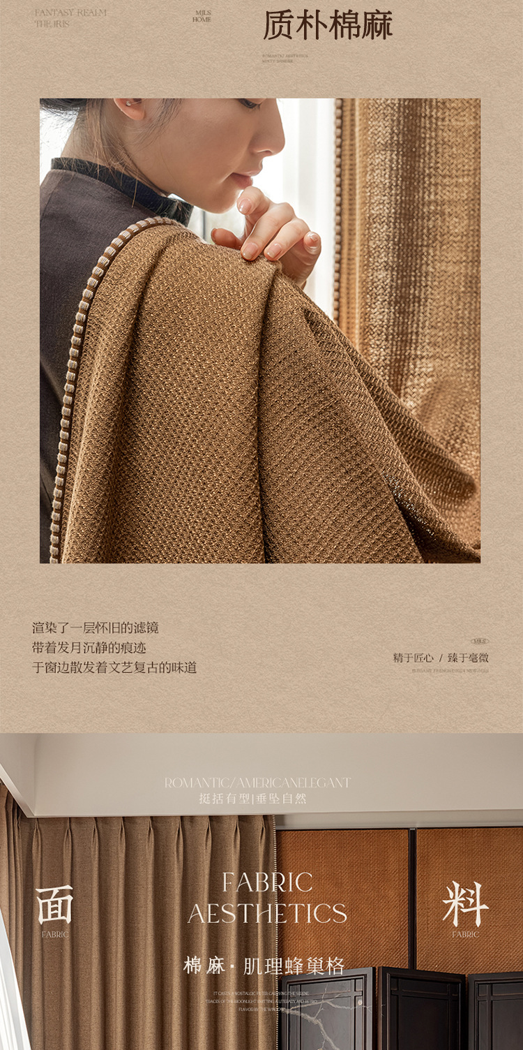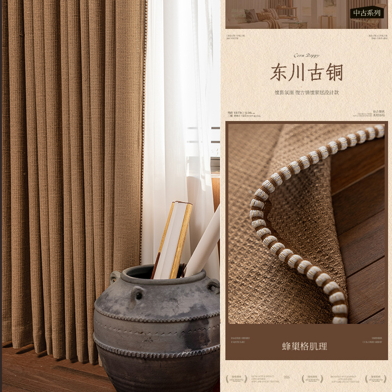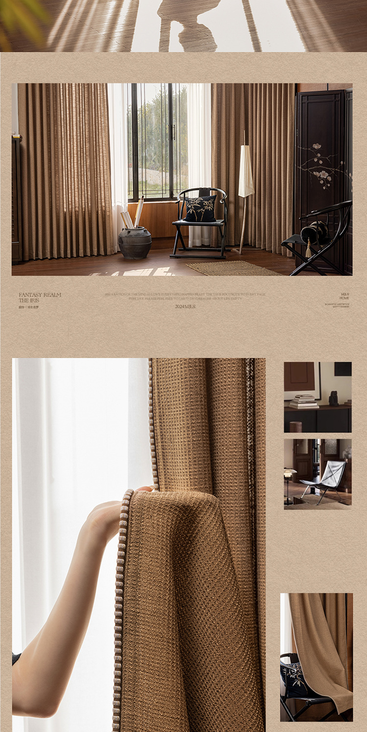 Sanqian Jinhua Fitian Tian Tian 커튼 중세 스타일 면 및 린넨 원사 염색 커튼 거실 침실 B&B 커튼 Shaoxing Keqiao