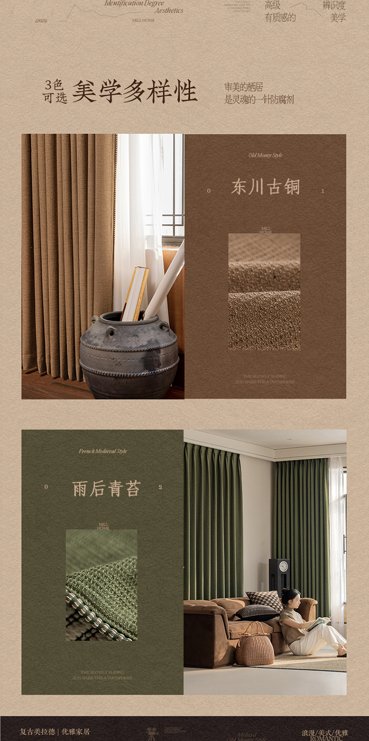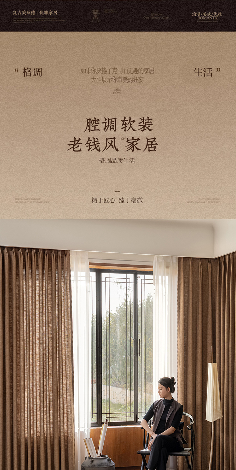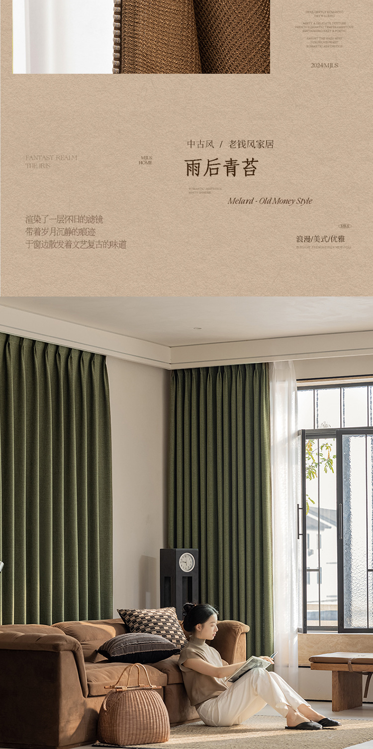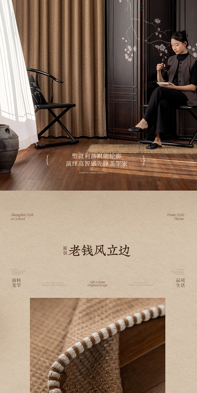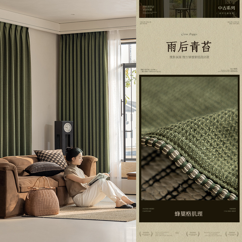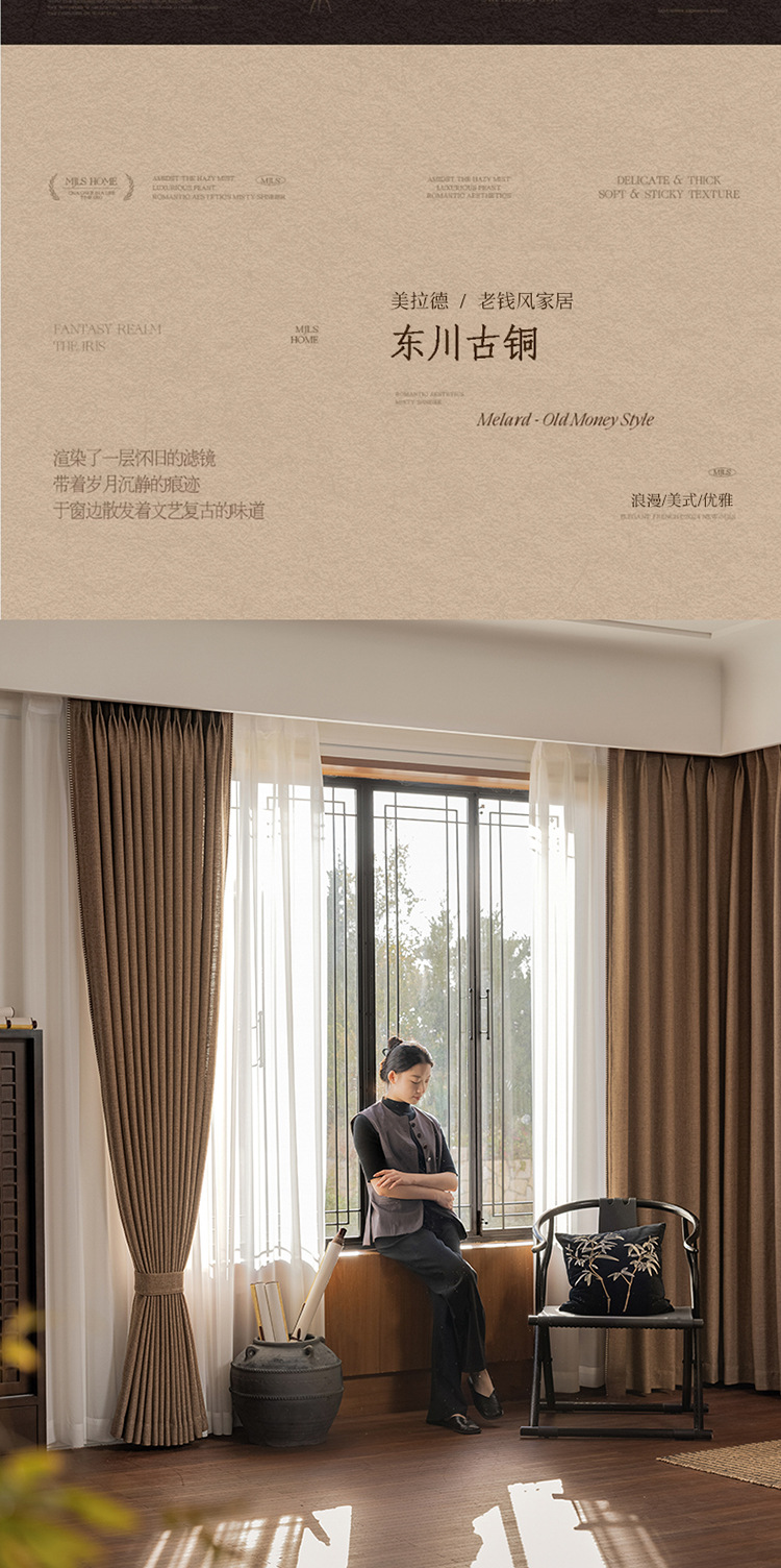 Sanqian Jinhua Fitian Tian Tian 커튼 중세 스타일 면 및 린넨 원사 염색 커튼 거실 침실 B&B 커튼 Shaoxing Keqiao