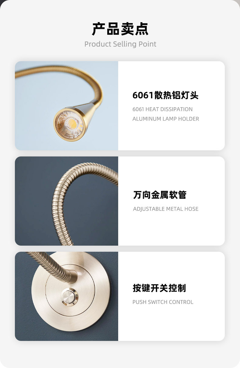 국경을 넘는 LED 호텔 침대 옆 독서등 유연한 구부러지는 실내 벽등스토어 가기