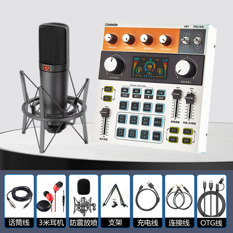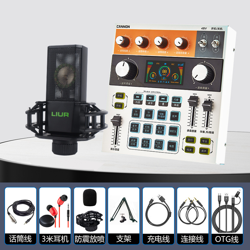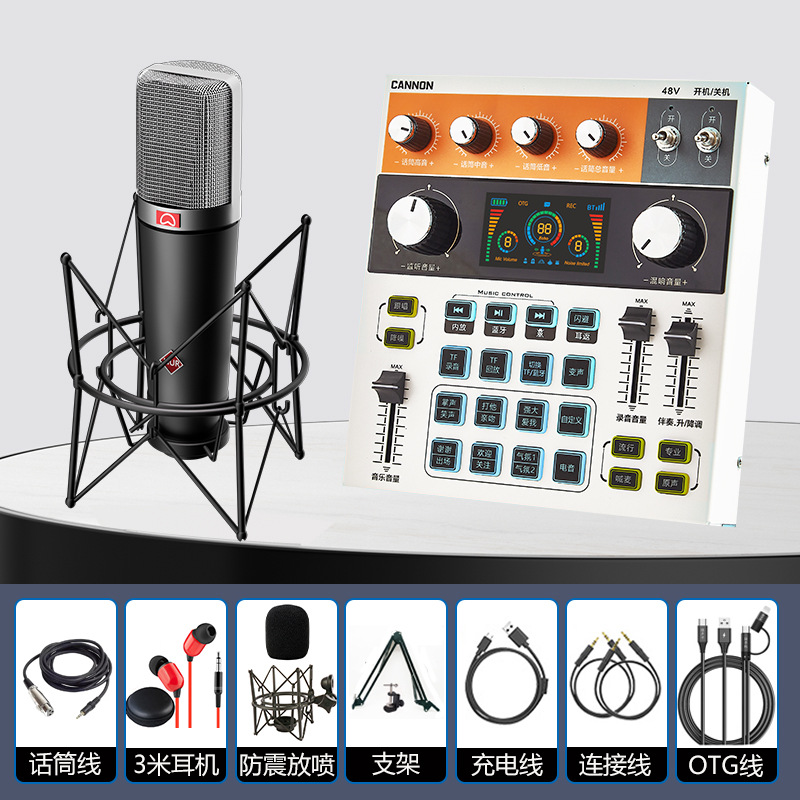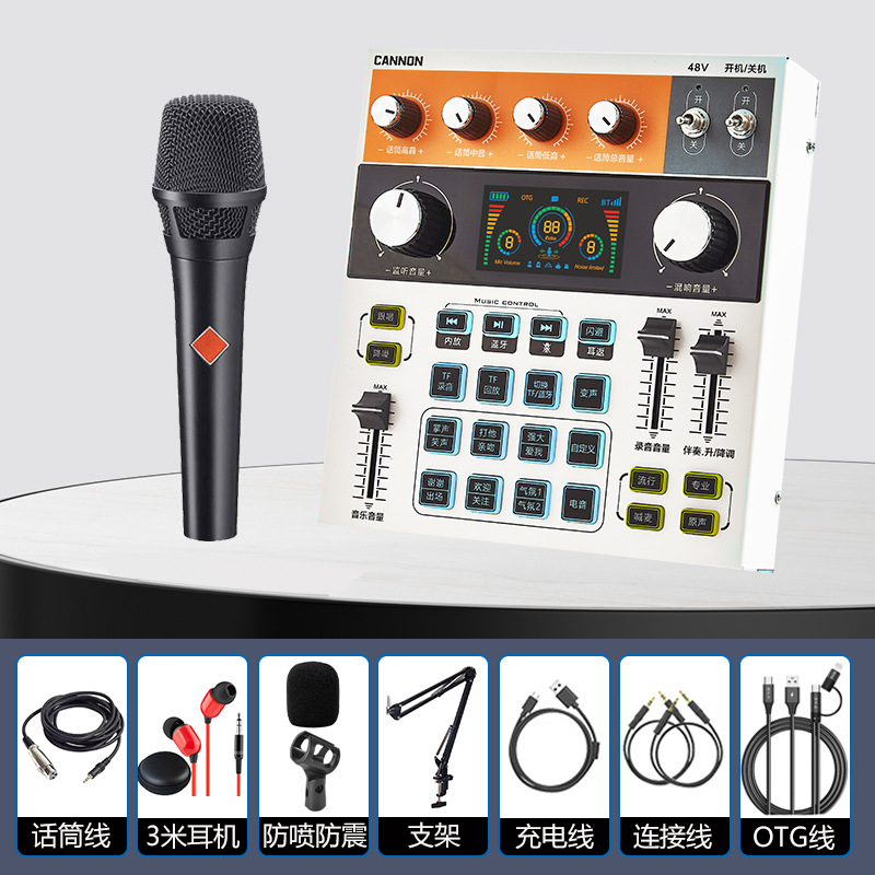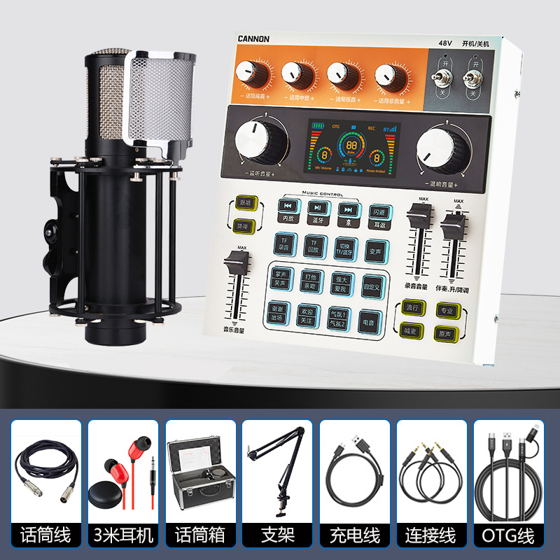 무료 배송 사운드 카드 라이브 노래 전용 장비 휴대 전화 Douyin 앵커 48V 마이크 노래방 녹음 마이크 전체 세트