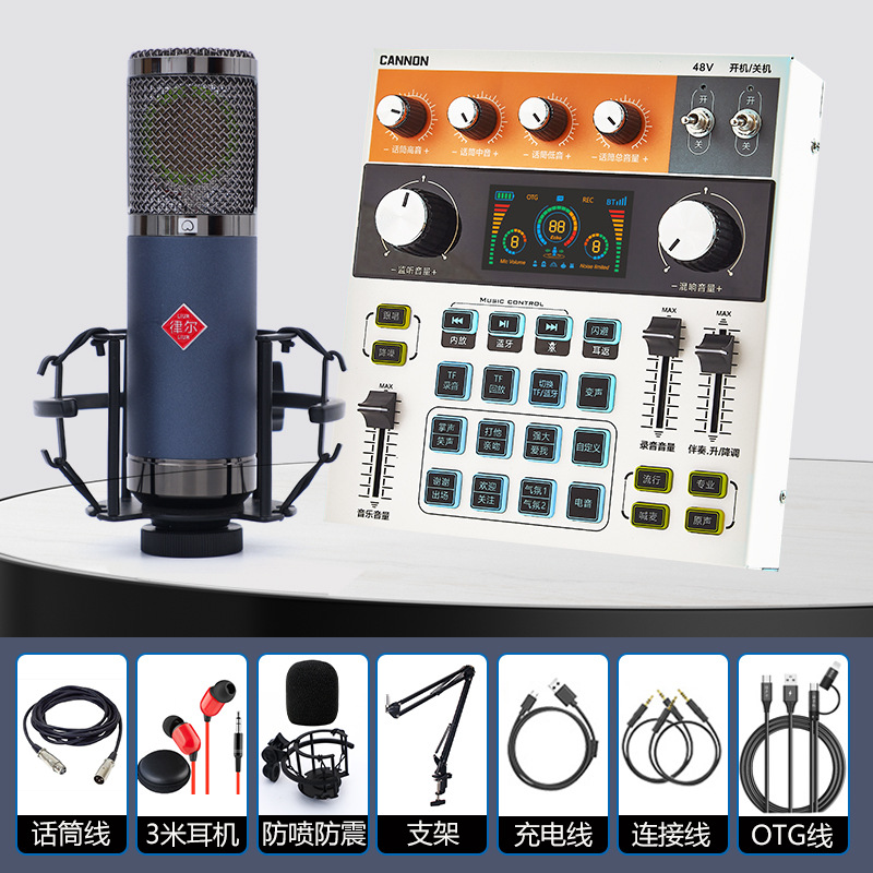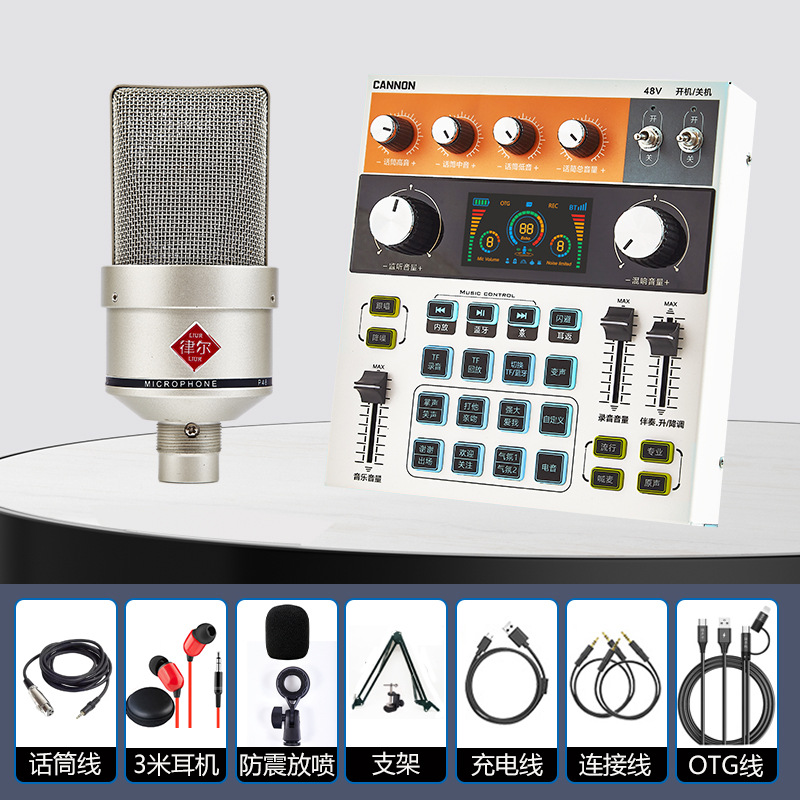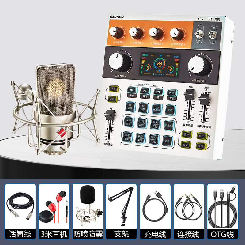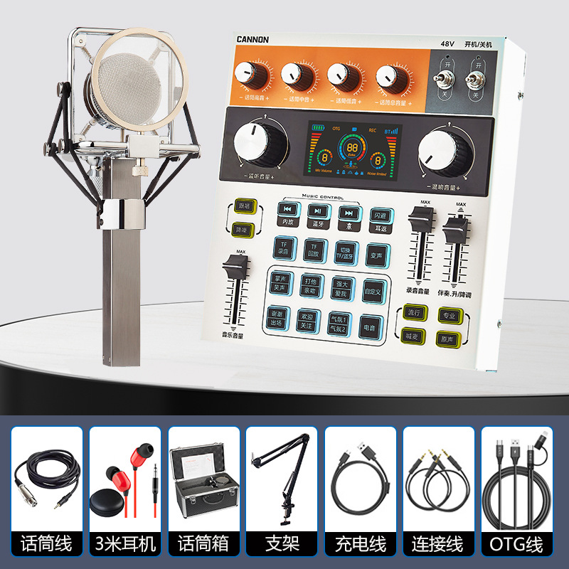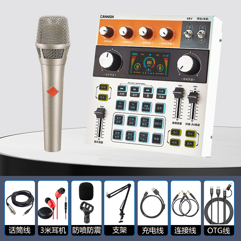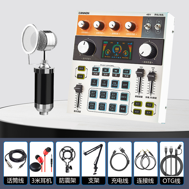 무료 배송 사운드 카드 라이브 노래 전용 장비 휴대 전화 Douyin 앵커 48V 마이크 노래방 녹음 마이크 전체 세트
