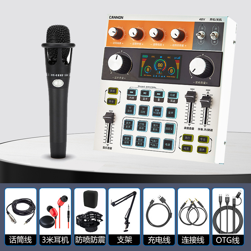 무료 배송 사운드 카드 라이브 노래 전용 장비 휴대 전화 Douyin 앵커 48V 마이크 노래방 녹음 마이크 전체 세트스토어 가기