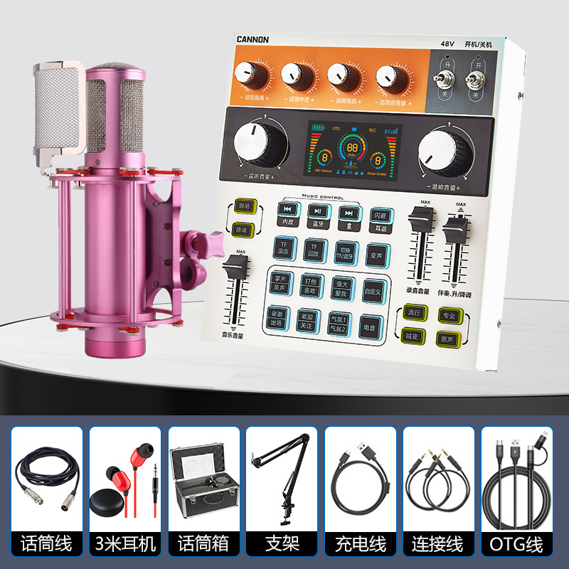 • [개성 궁전 레벨] C200 사운드 카드 + 48V 대형 다이어프램 마이크 핑크 S600
