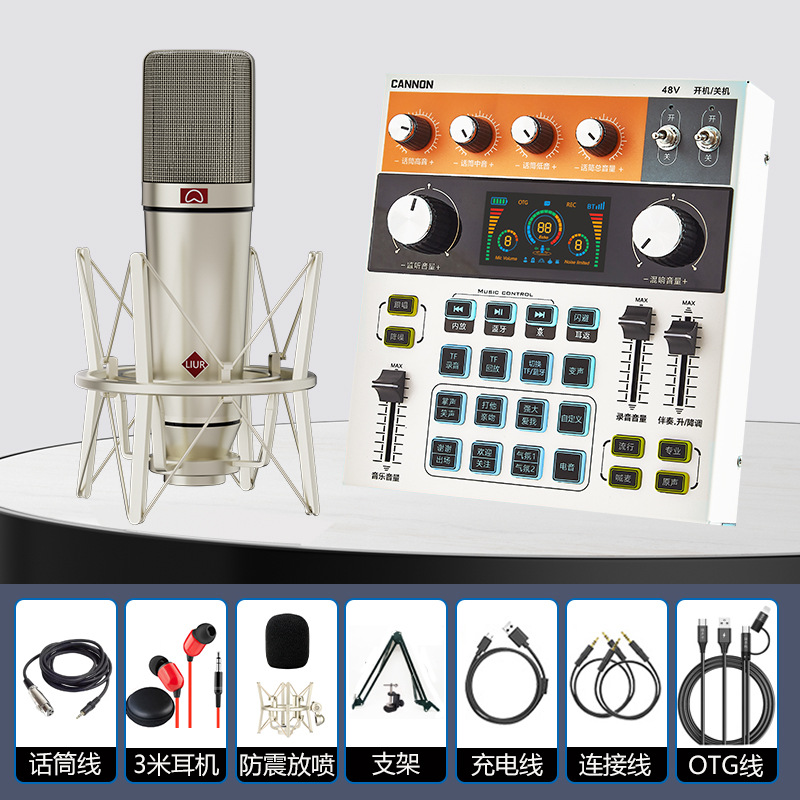 • [궁전급] C200 사운드 카드 + 48V 대형 다이어프램 마이크 U87 샴페인 컬러