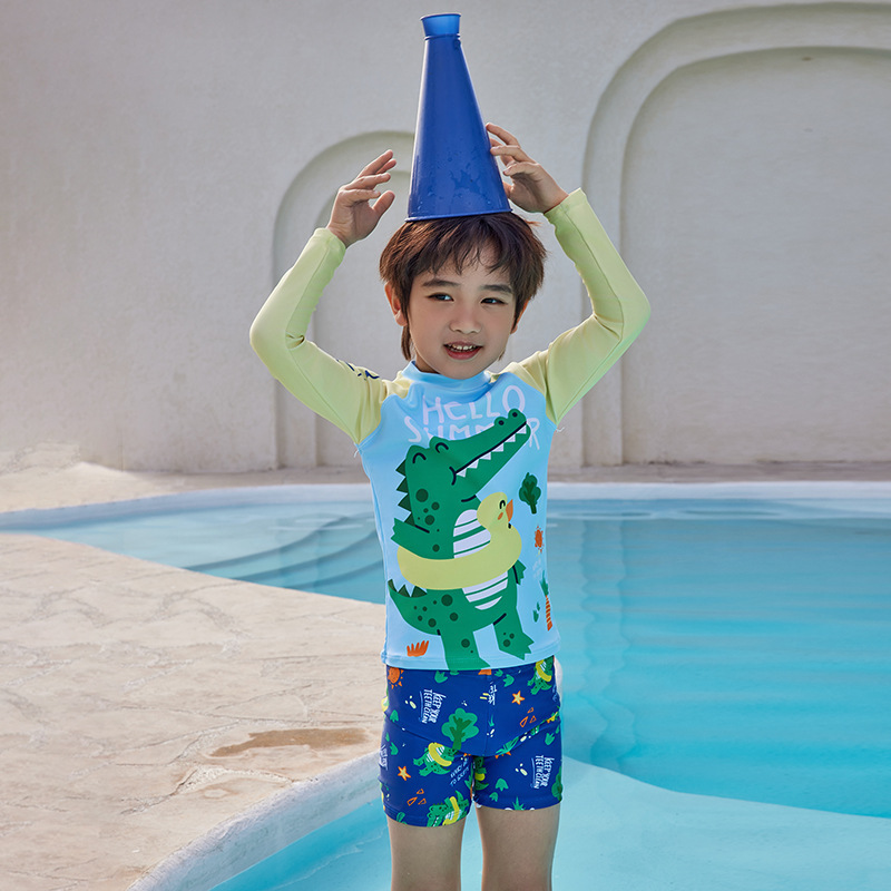 2025 새로운 어린이 수영복 소년 만화 귀여운 악어 패턴 스플릿 반팔 수영복 온천 캐주얼 수영복