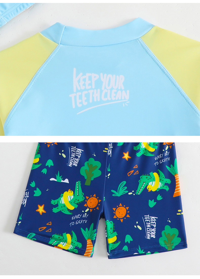 2025 새로운 어린이 수영복 소년 만화 귀여운 악어 패턴 스플릿 반팔 수영복 온천 캐주얼 수영복스토어 가기