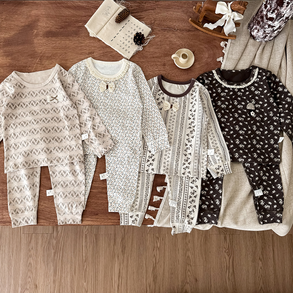 2025 가을 어린이 잠옷 클래스 A 순수 면화 뼈없는 어린이 가정 의류 소년과 소녀 아기 만화 속옷 세트스토어 가기