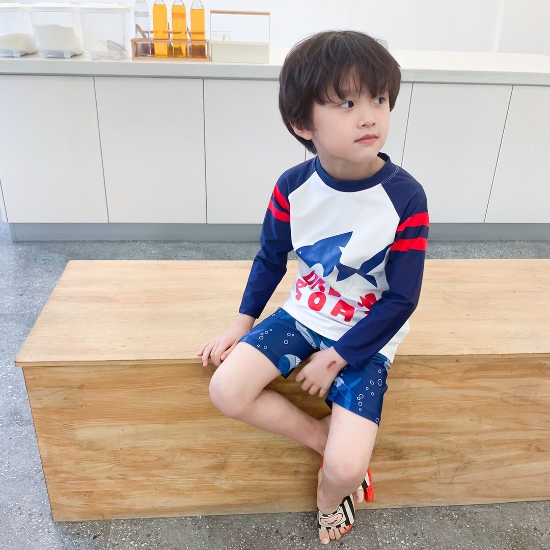 아동용 수영복, 남아용, 중소형 아동용 스플릿 자외선 차단 긴팔 수영복, 남아용 비치 팬츠, 아동용 속건 슈트스토어 가기