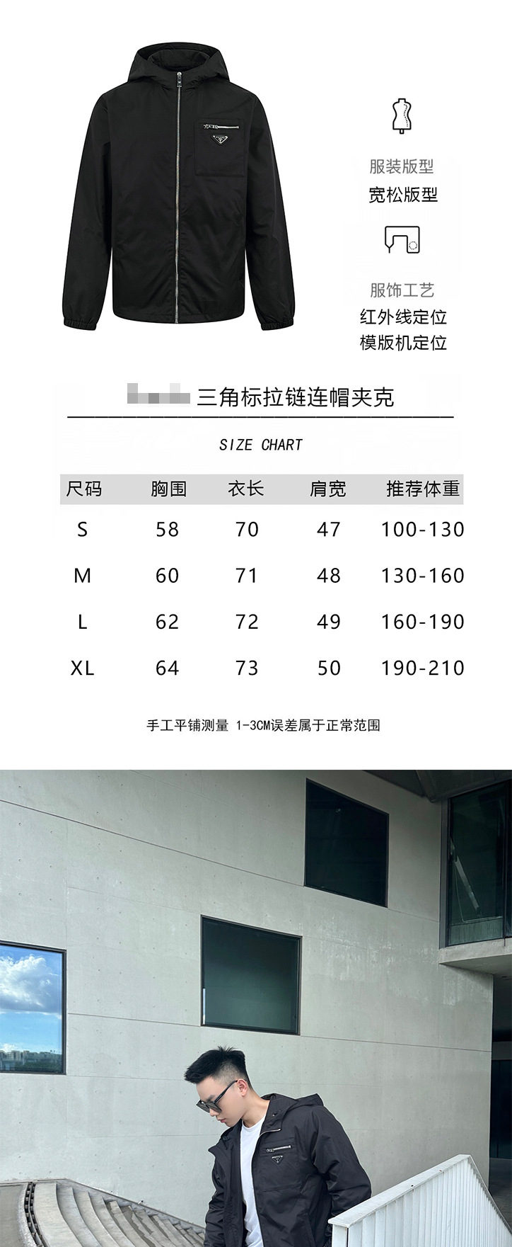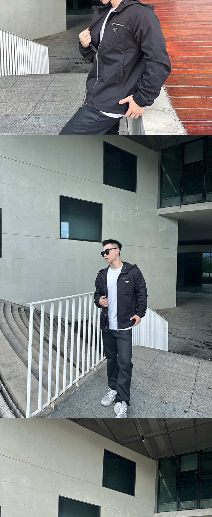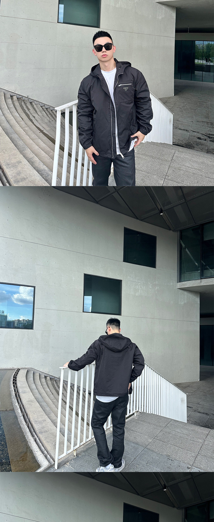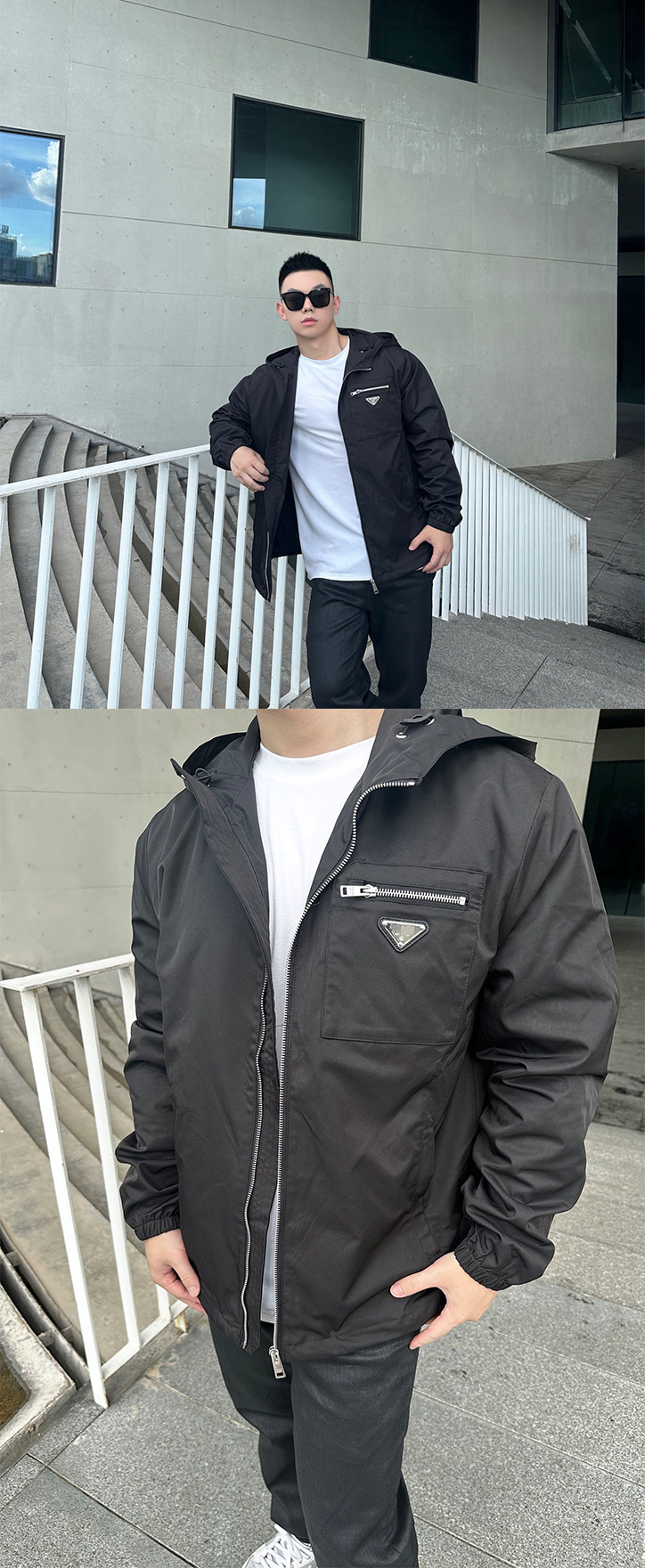 25PRD 삼각형 로고 지퍼 후드 재킷 입체 문자 금속 로고 방풍 아웃도어 남성 캐주얼스토어 가기