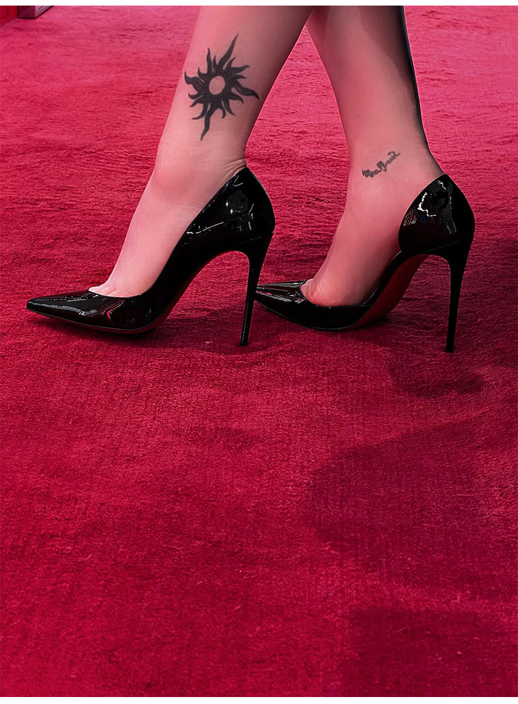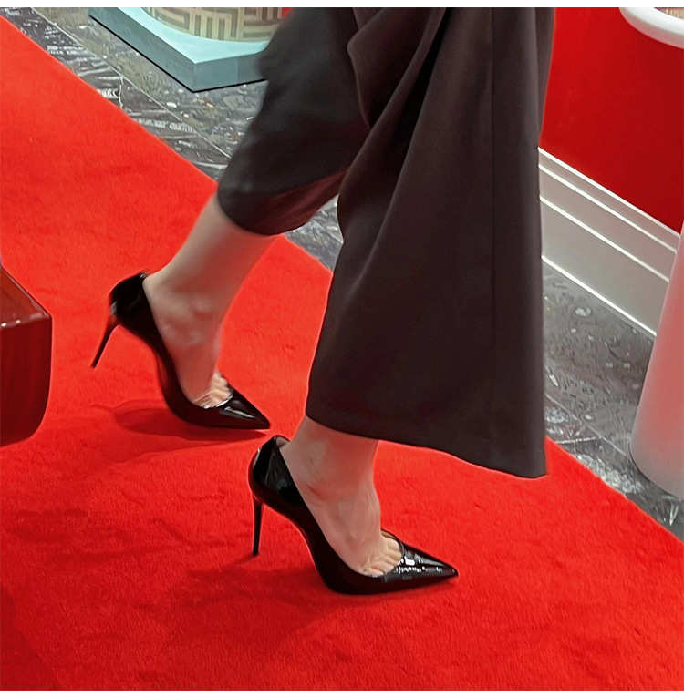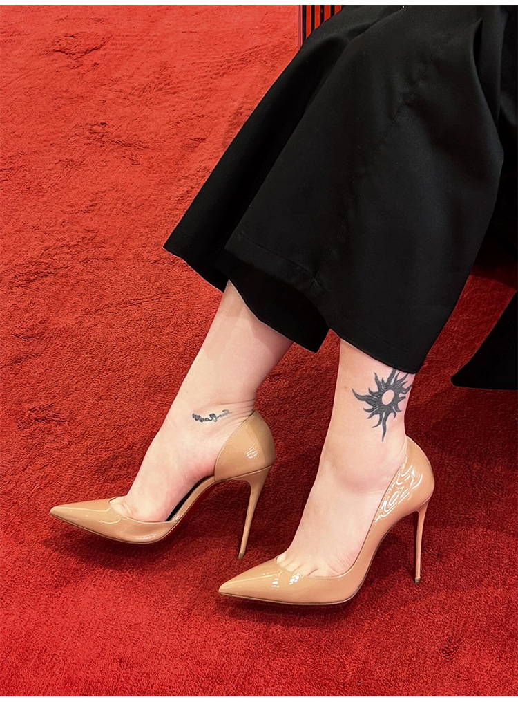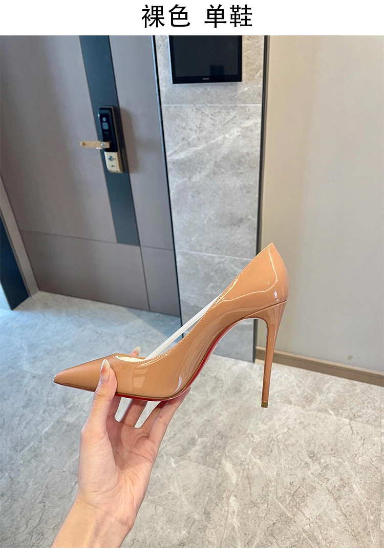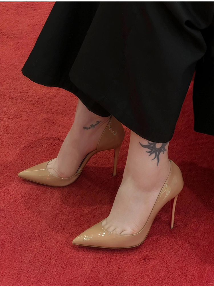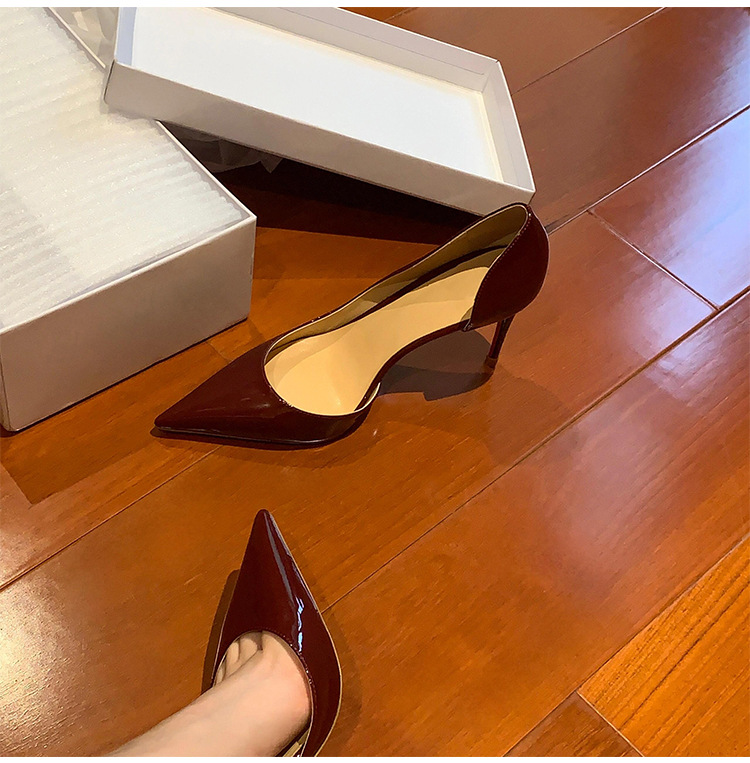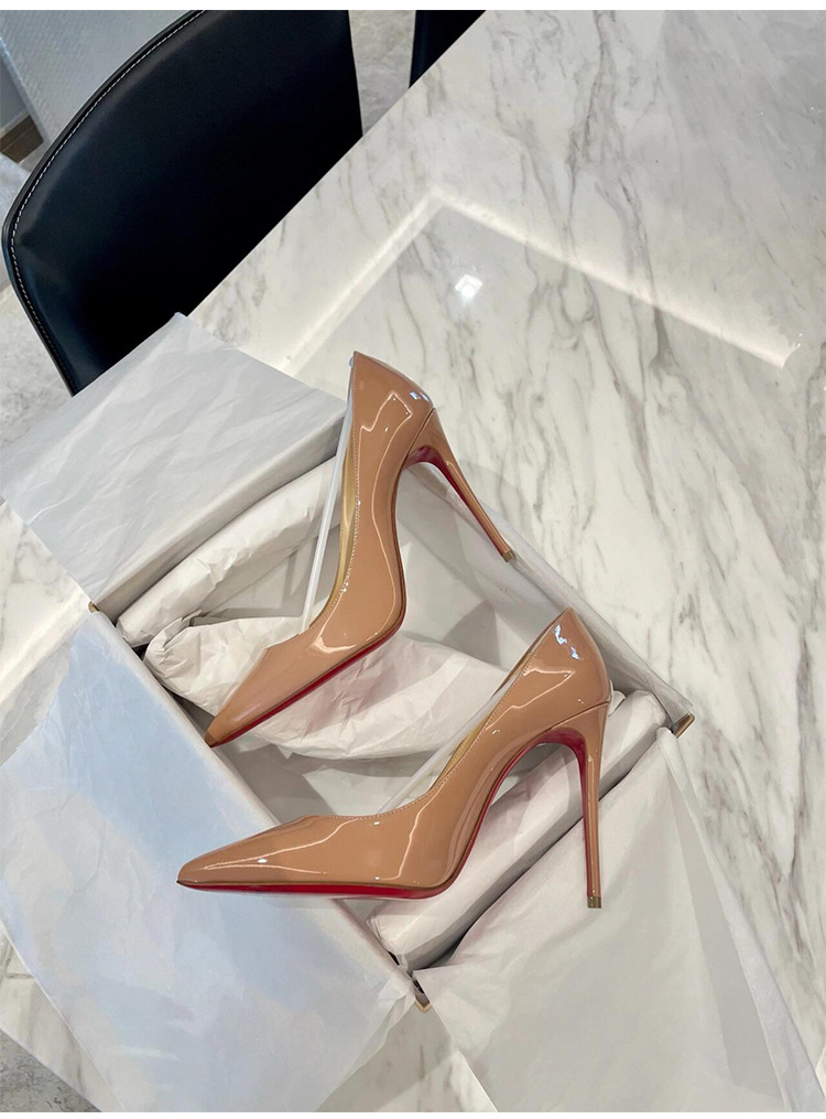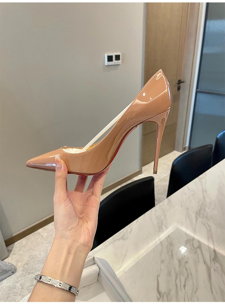 여성용 사이드 빈 레드 솔 누드 하이힐, 여성용 특허 가죽 2025 신작 봄, 가을 뾰족한 발가락 전문 발이 피곤하지 않은 여성용 스틸레토 힐스토어 가기