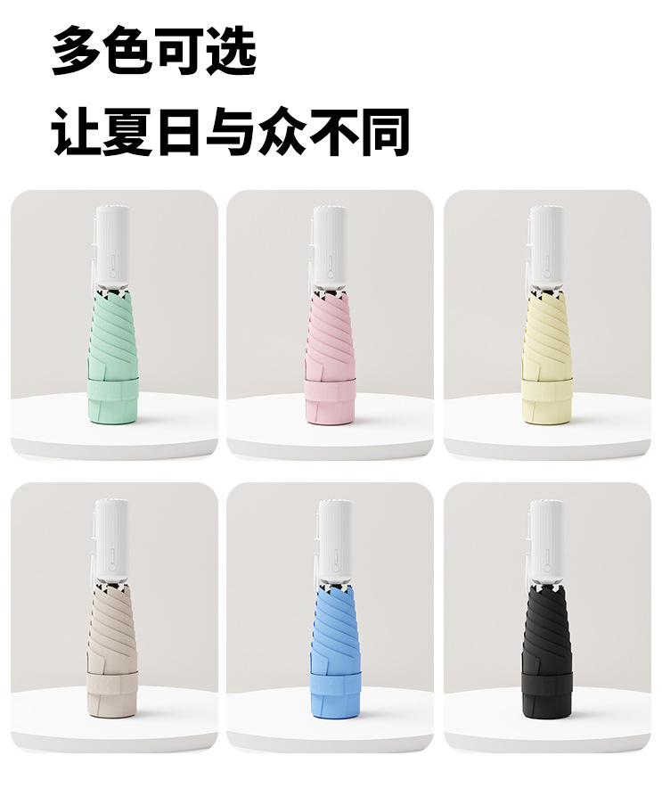 6 뼈 충전식 팬 우산 접이식 냉각 여성 미니 포켓 안티 UV 비 또는 빛 파라솔 도매스토어 가기