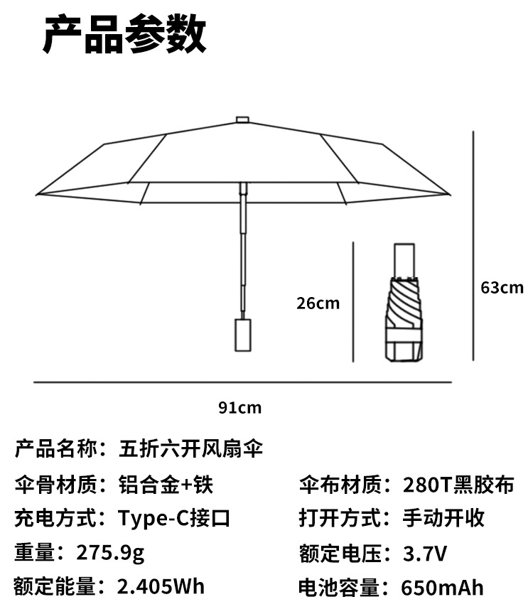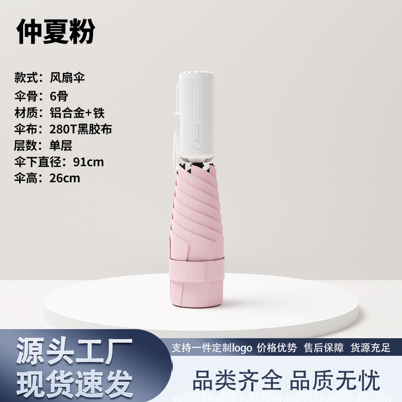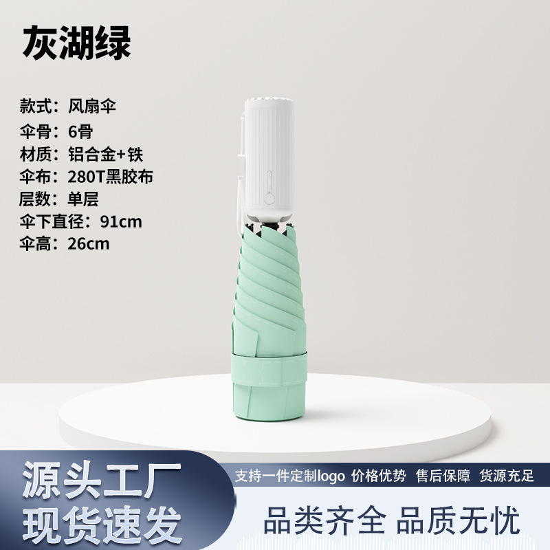 6 뼈 충전식 팬 우산 접이식 냉각 여성 미니 포켓 안티 UV 비 또는 빛 파라솔 도매