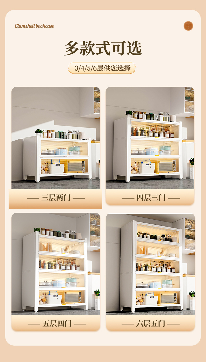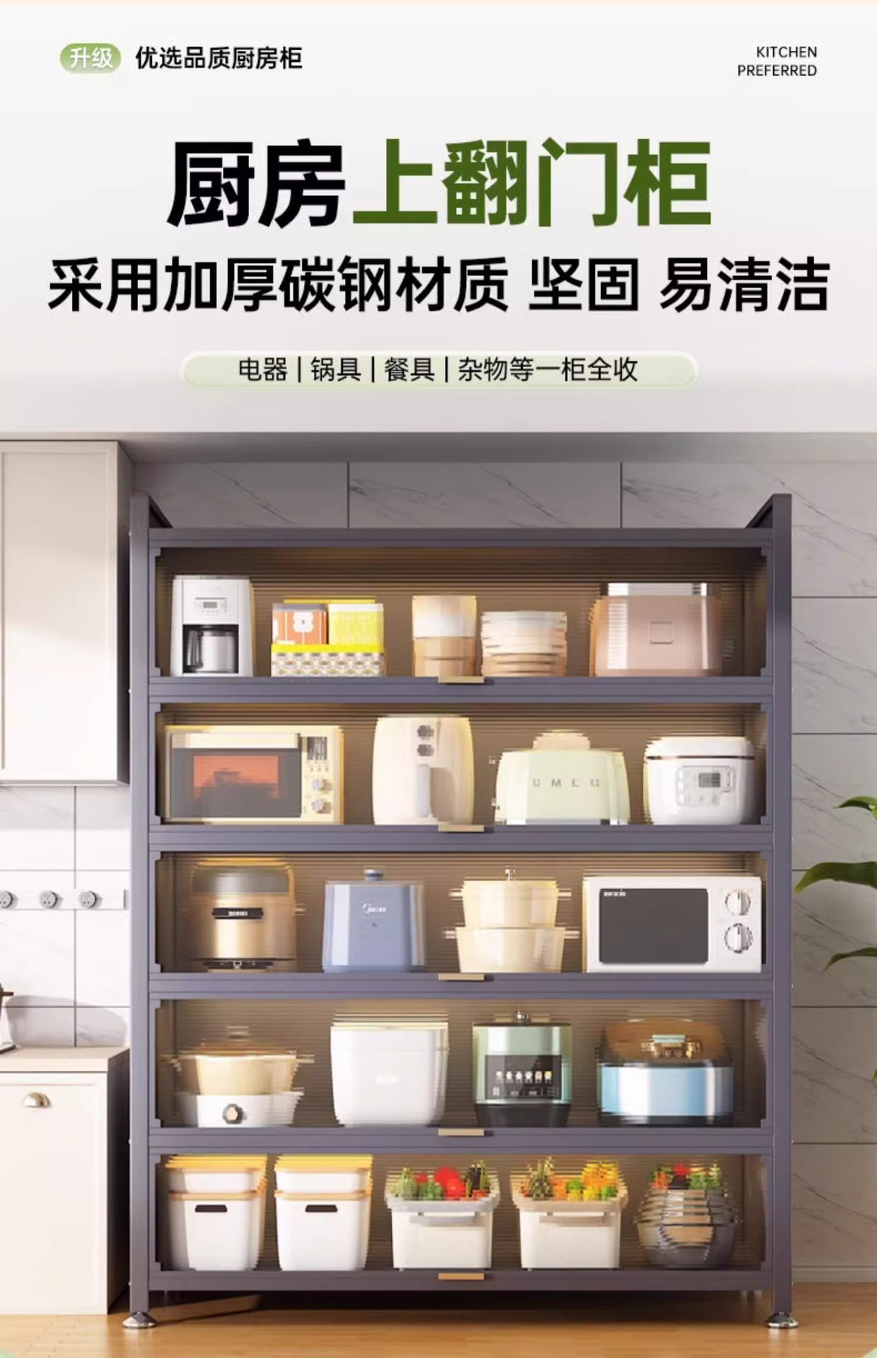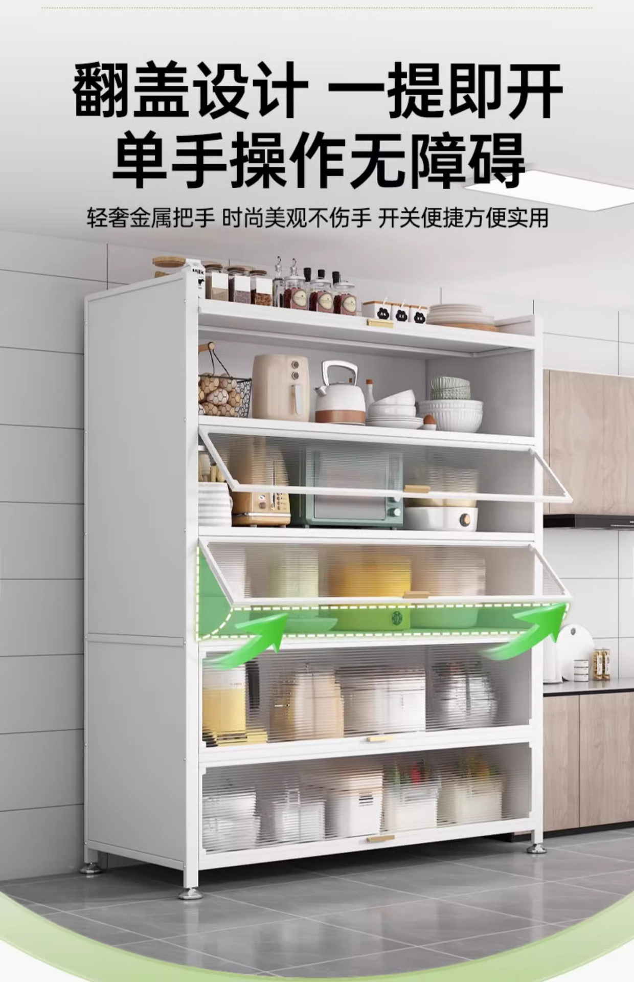 문이 있는 다층 새 수납 캐비닛, 찬장, 주방 수납 캐비닛, 수납 선반, 다기능 전자레인지 플립 커버