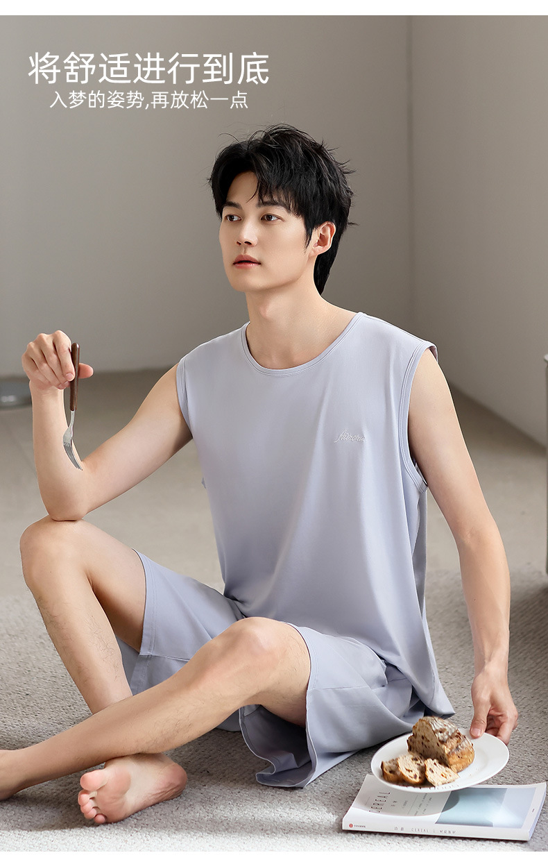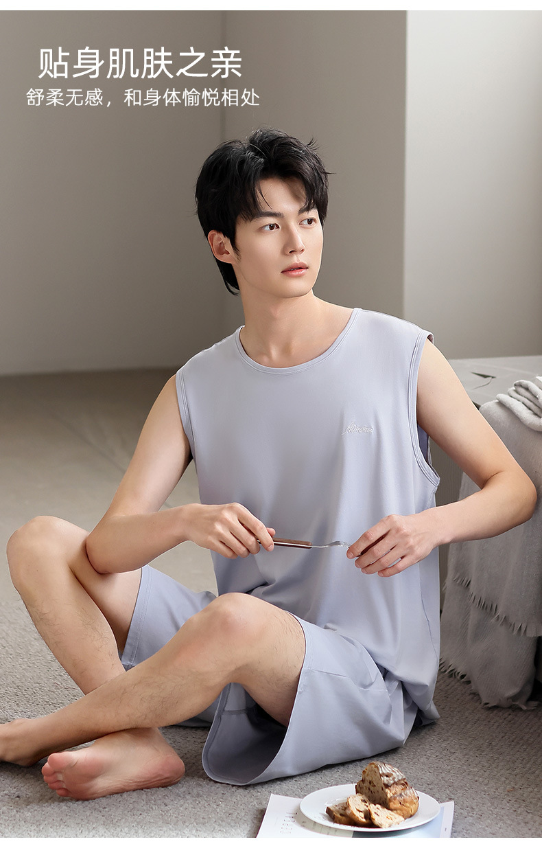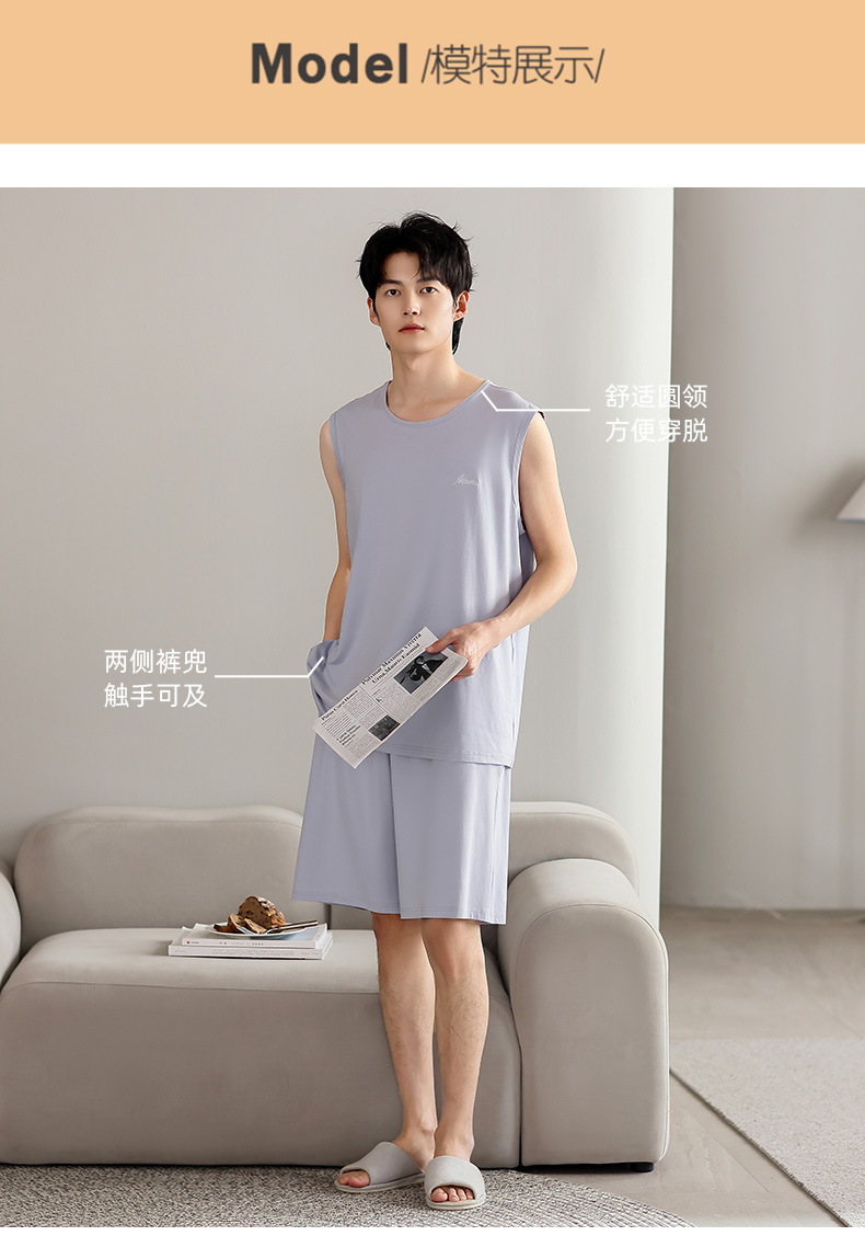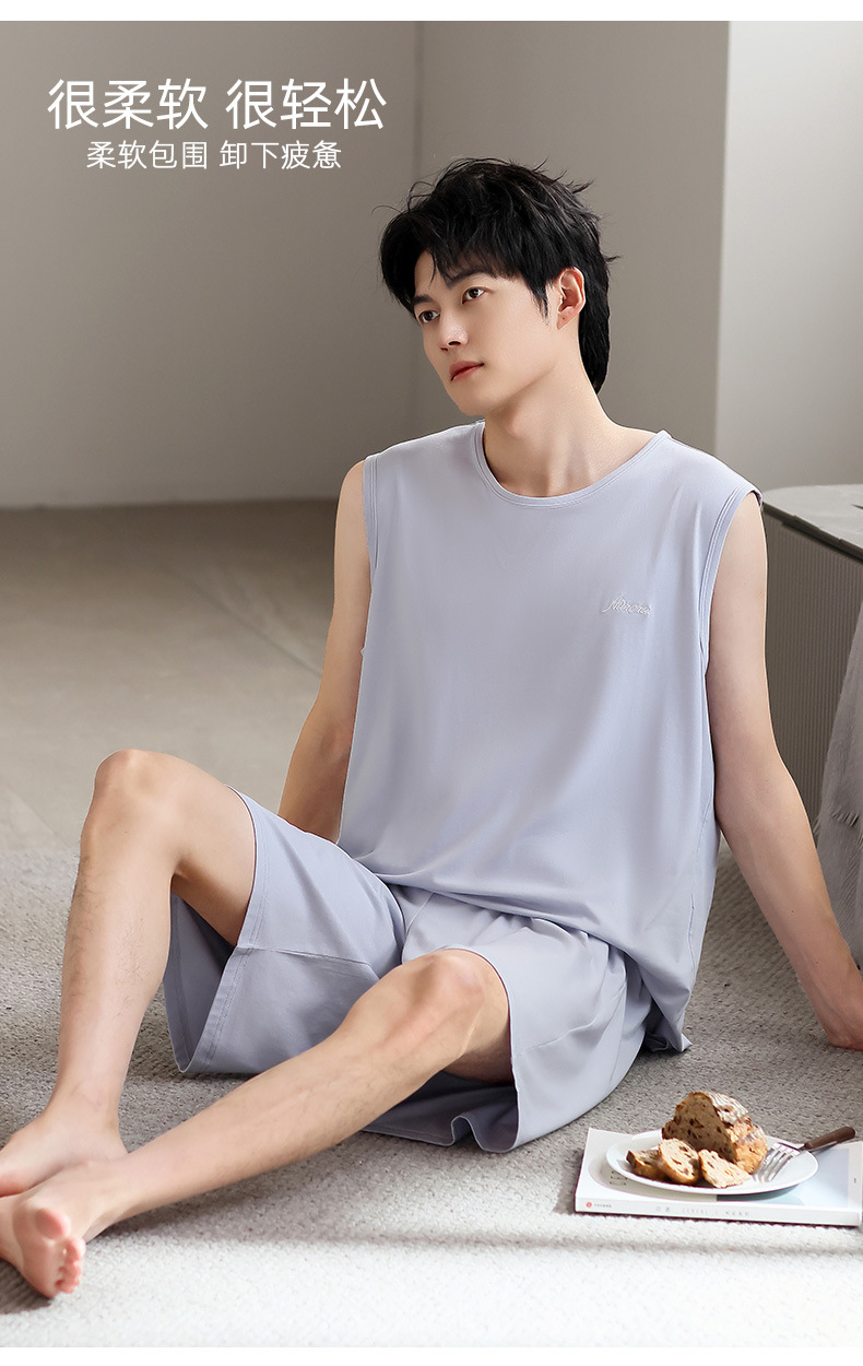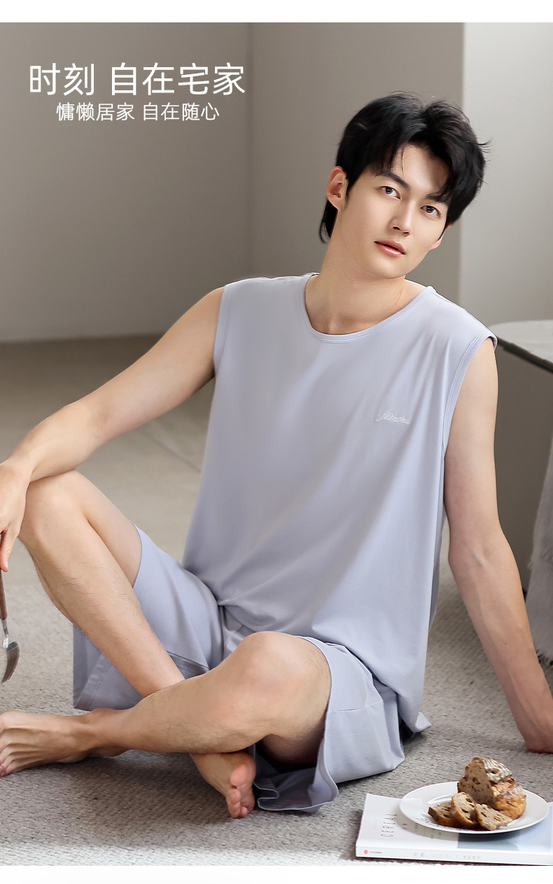 남성 잠옷 여름 모달 조끼 민소매 반바지 얇은 대형 스포츠 및 레저 여름 가정복 겉옷스토어 가기