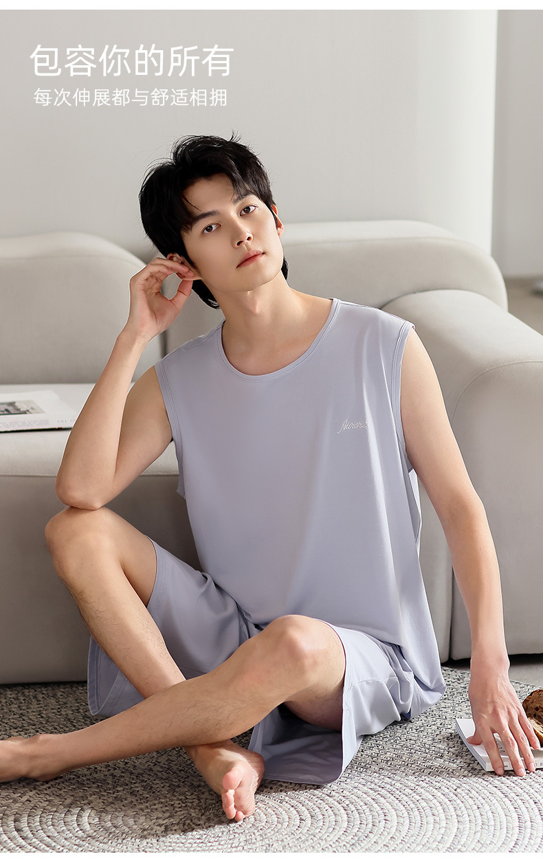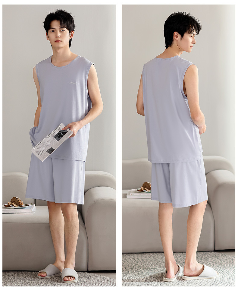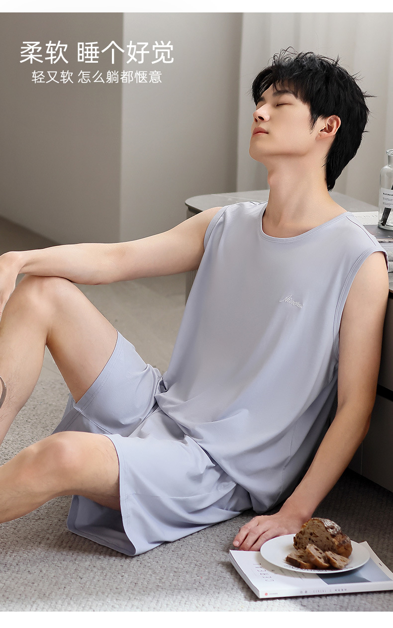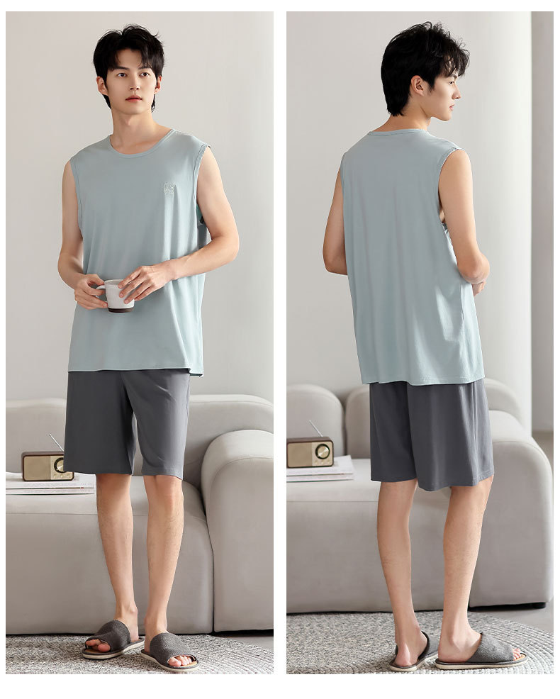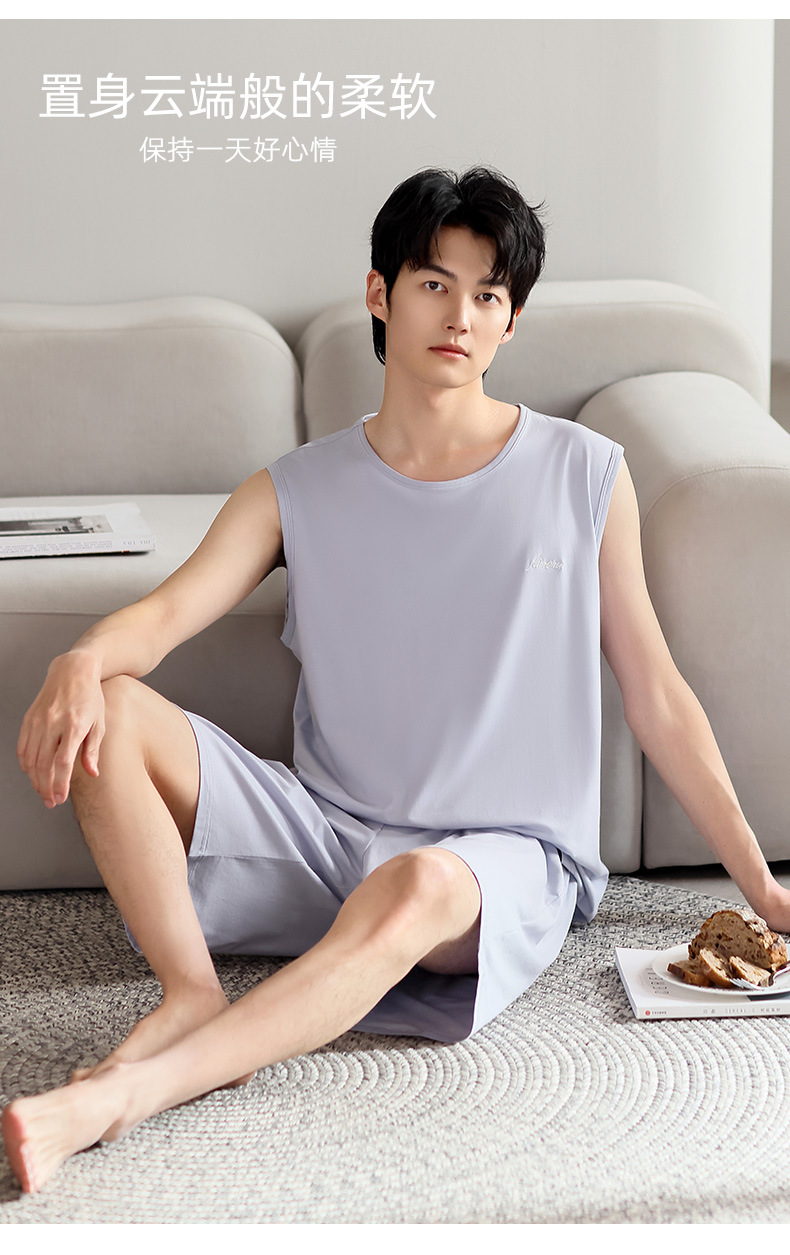 남성 잠옷 여름 모달 조끼 민소매 반바지 얇은 대형 스포츠 및 레저 여름 가정복 겉옷스토어 가기