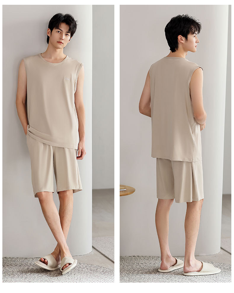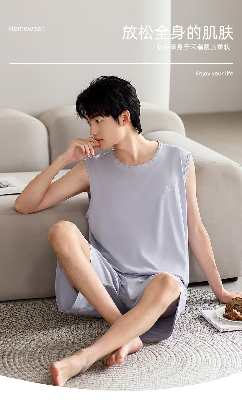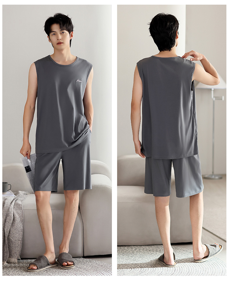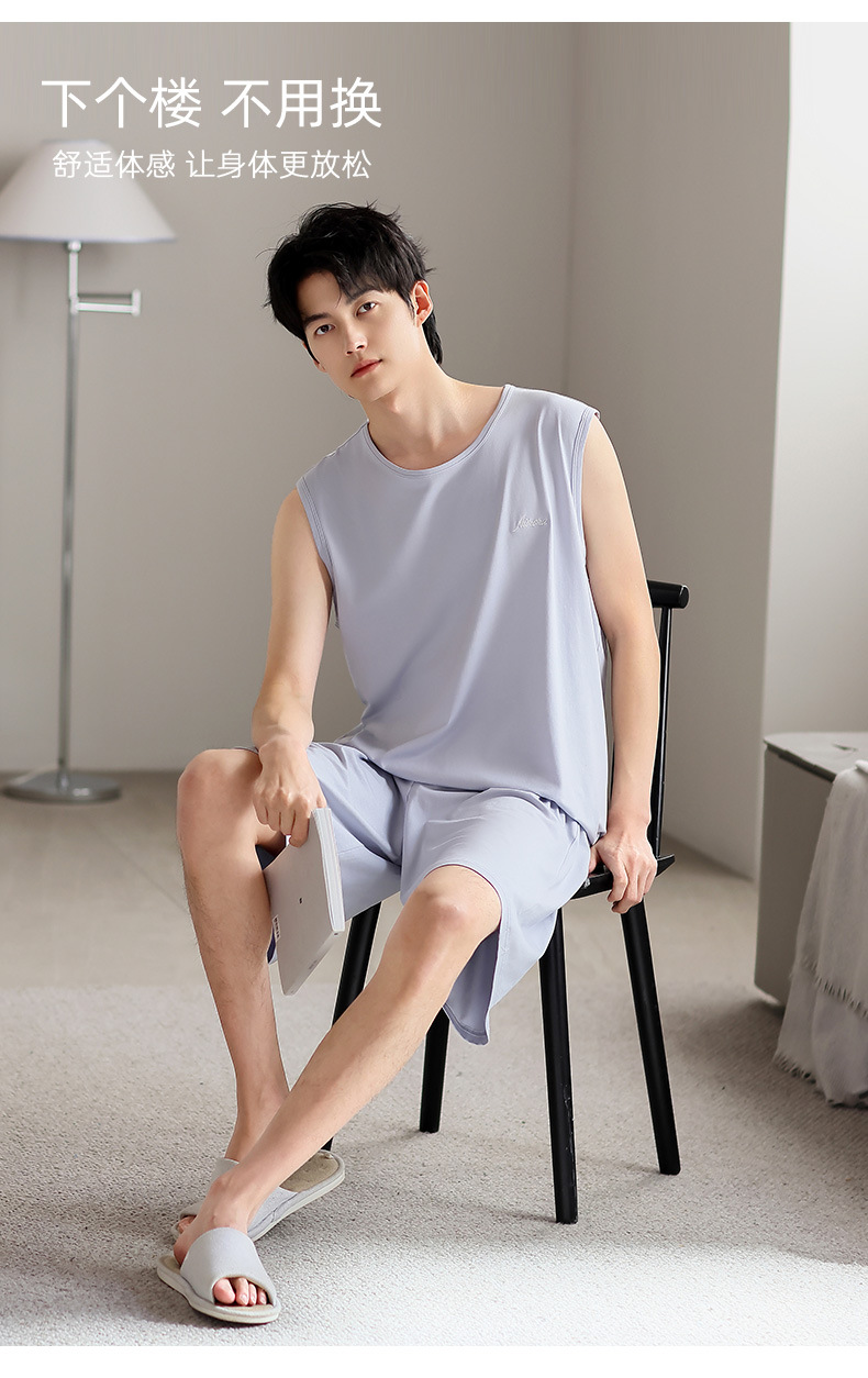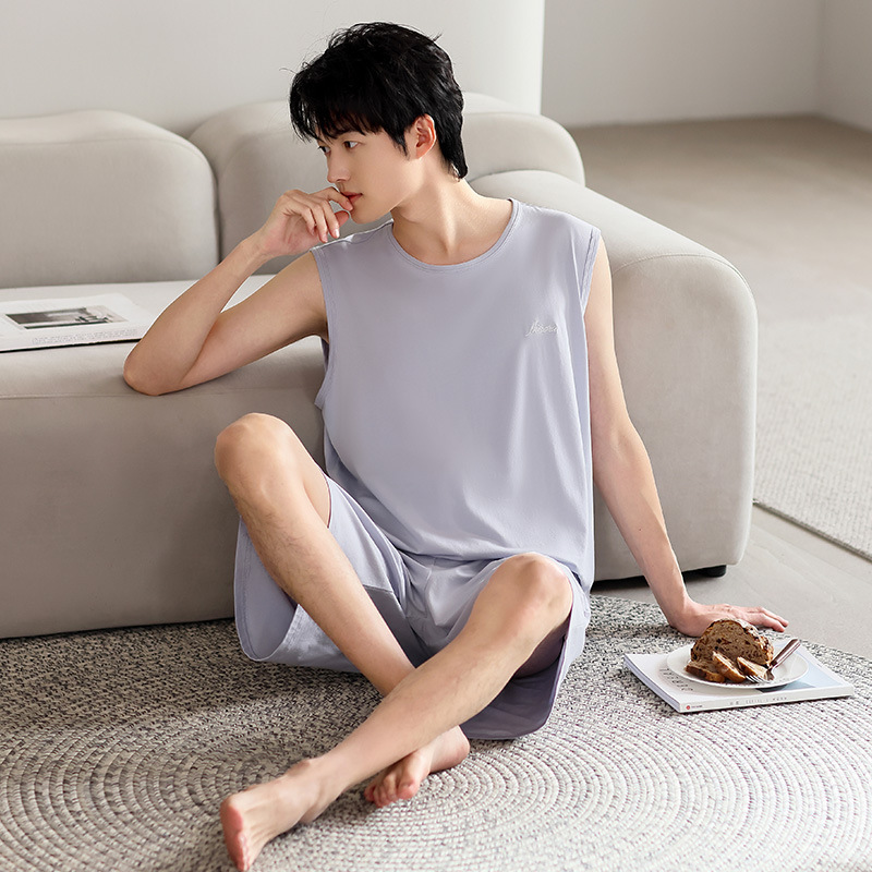 남성 잠옷 여름 모달 조끼 민소매 반바지 얇은 대형 스포츠 및 레저 여름 가정복 겉옷스토어 가기