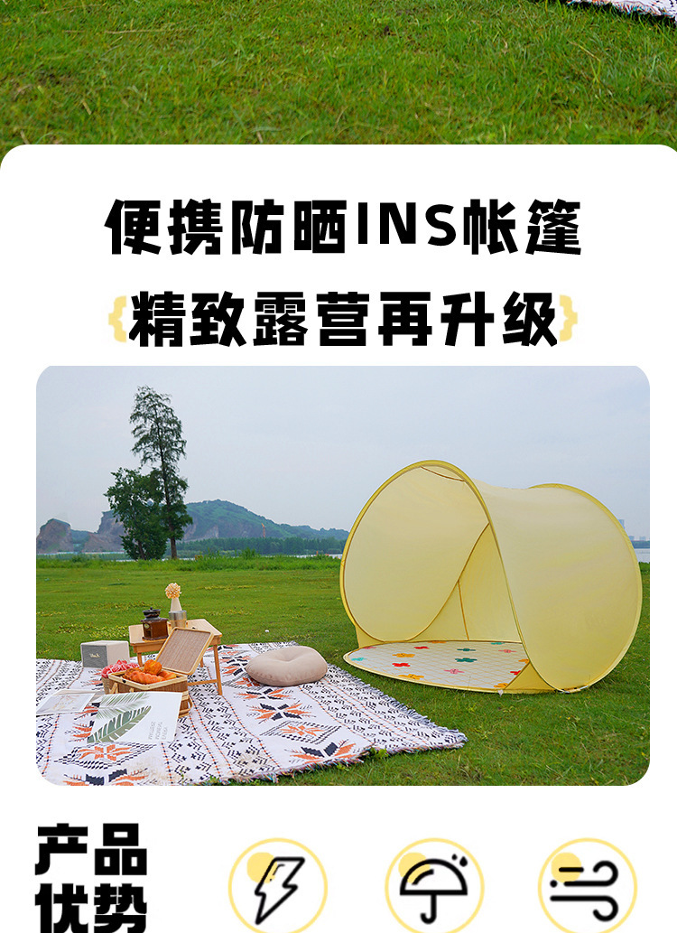 국경 간 소형 야외 해변 어린이 해변 피크닉 텐트 자동 접이식 휴대용 빠른 개방형 태양 보호 텐트