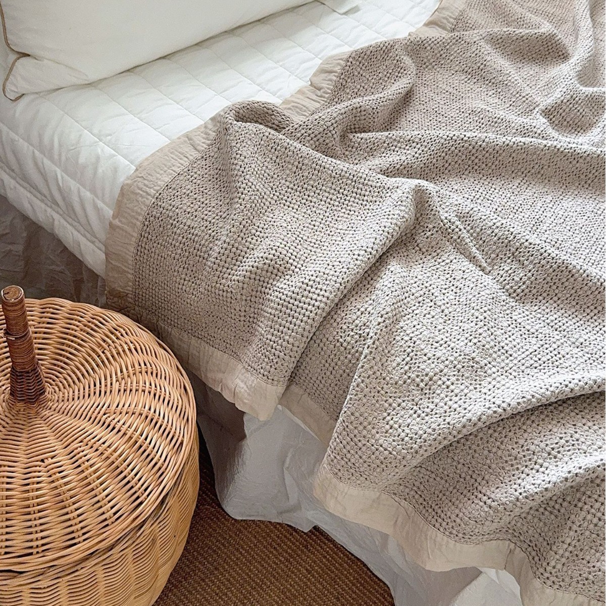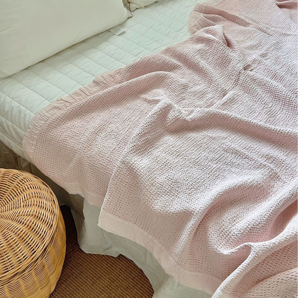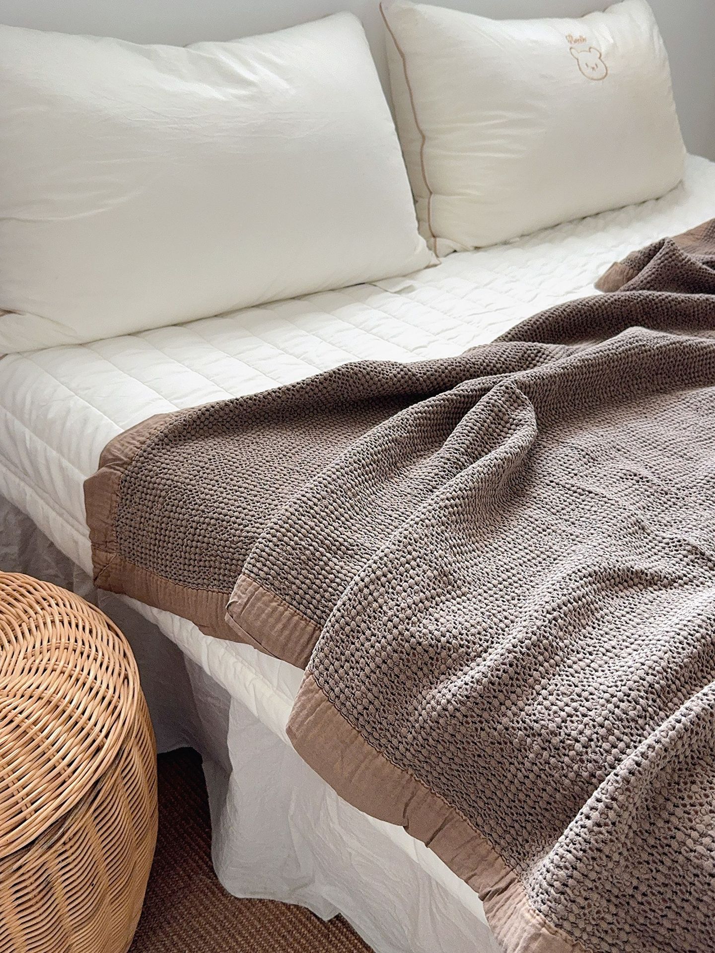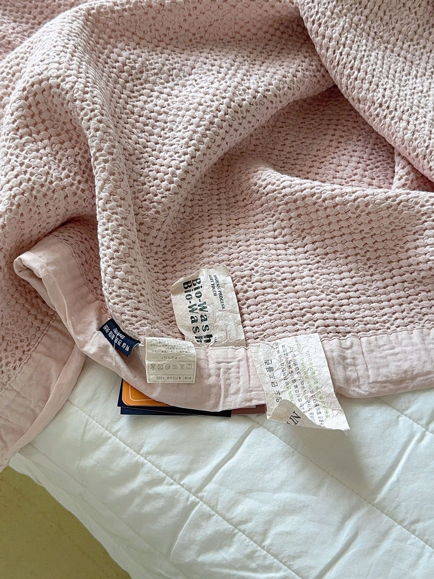 한국 면 와플 담요 대외 무역 ins 샌드 워시 천연 일체형 다기능 소파 담요 에어컨 담요스토어 가기