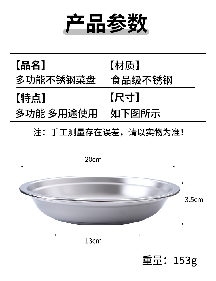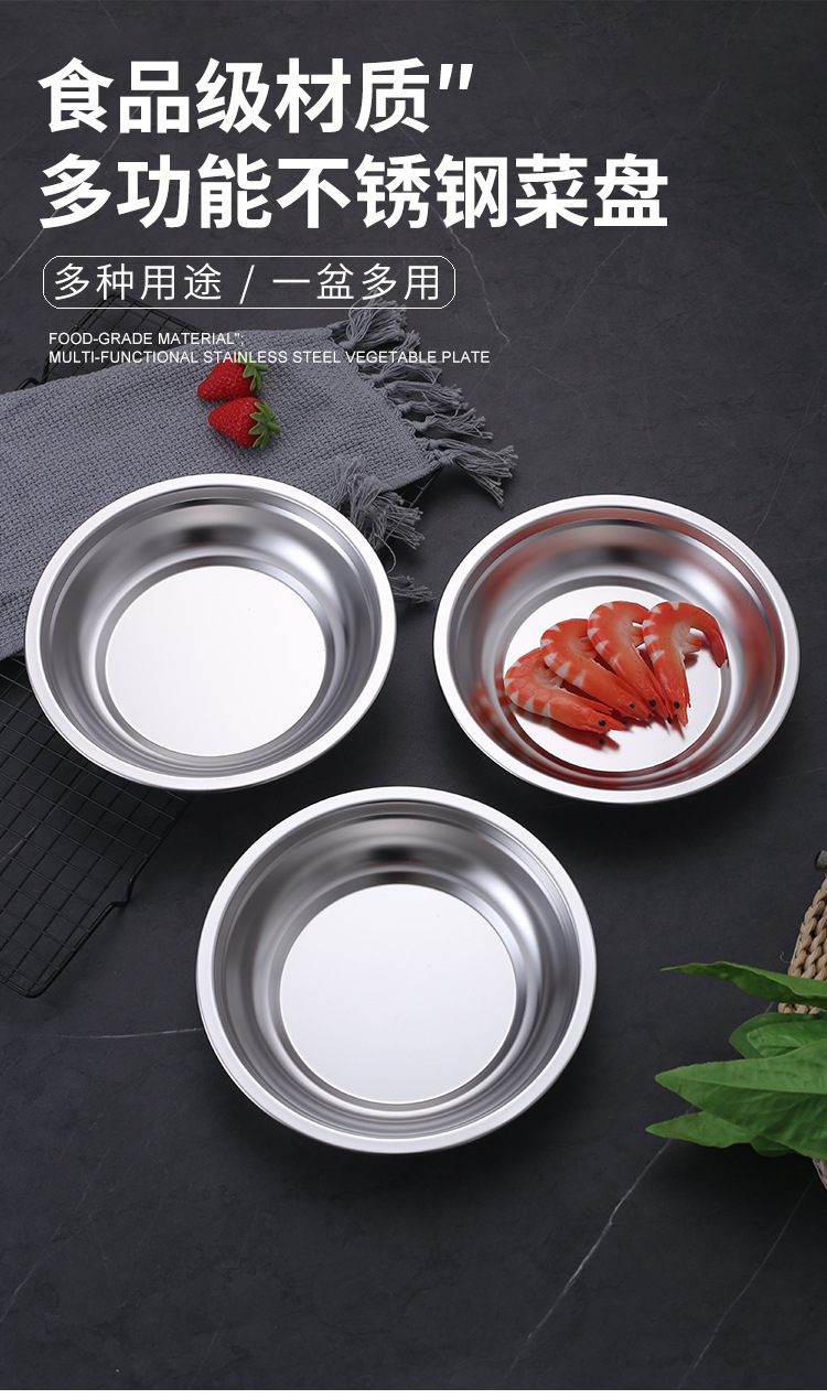 가정용 스테인레스 스틸 접시 접시 두꺼운 가정용 접시 접시 저녁 식사 접시 평평한 바닥 접시 접시 도매스토어 가기