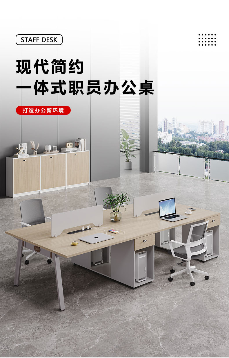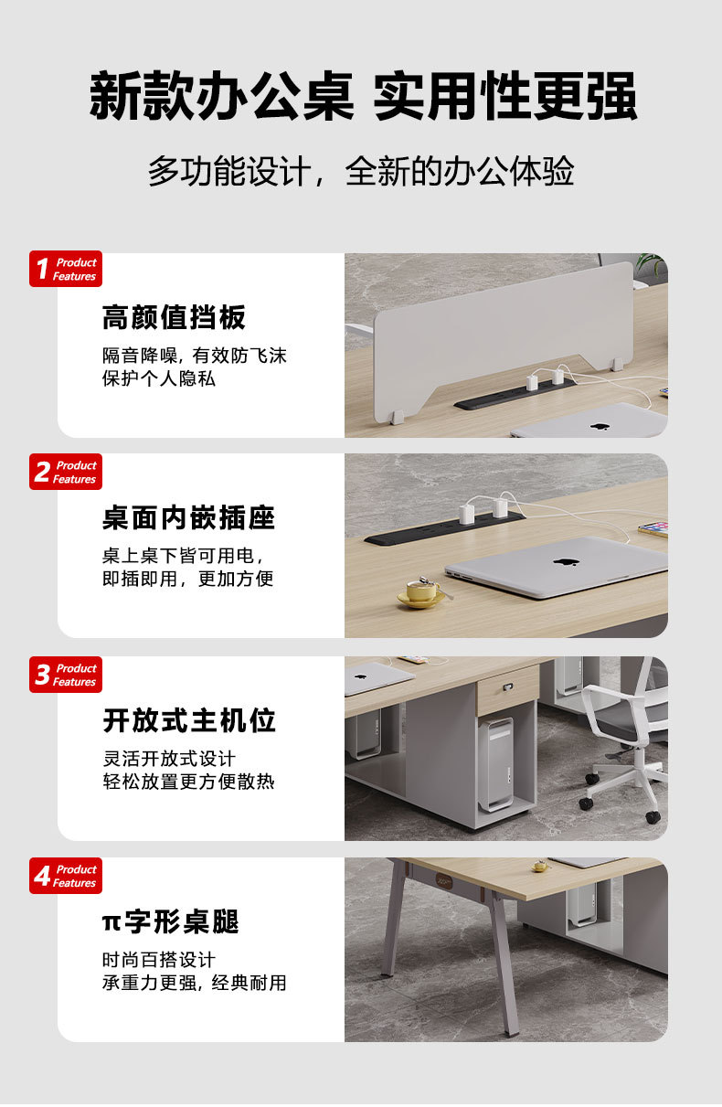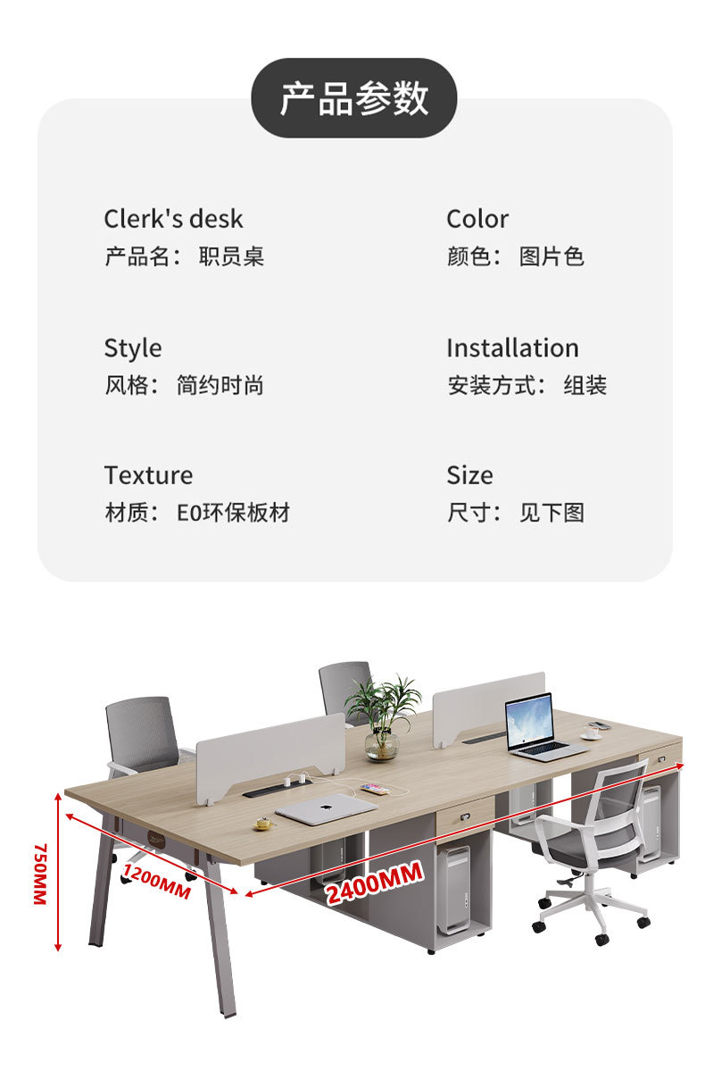 2025년 신형 4인용 6인용 사무용 컴퓨터 책상 고급형 콘센트 포함 직원용 컴퓨터 책상과 의자 세트
