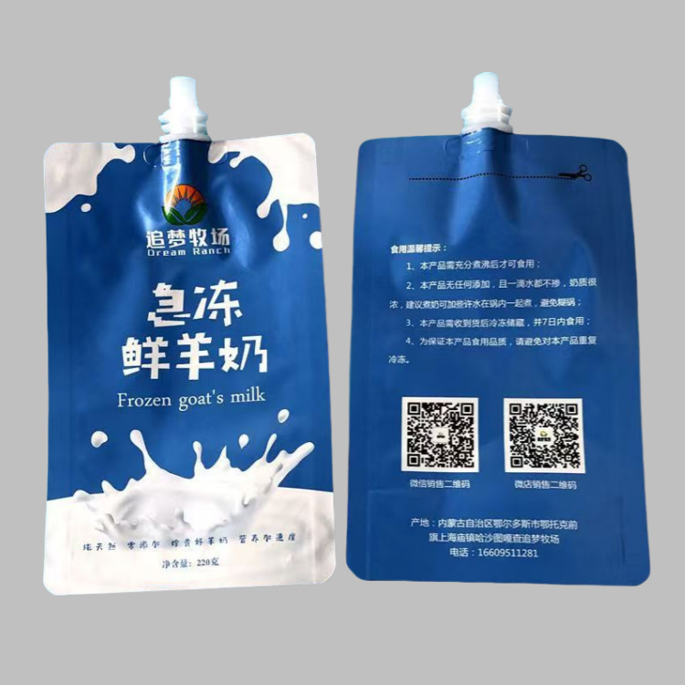 产品名称;鲜羊奶储存自立吸嘴袋