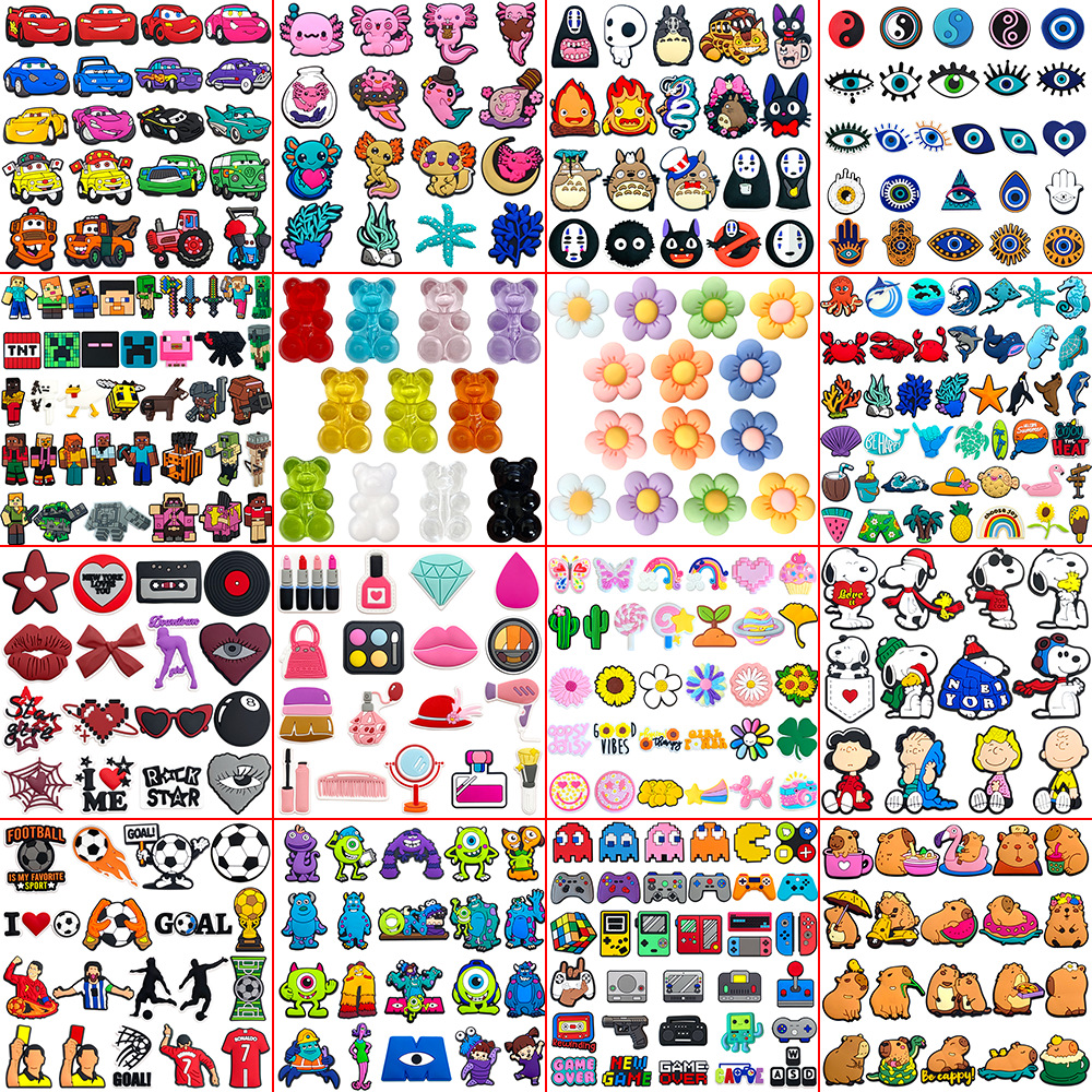 200 세트 구멍 신발 꽃 만화 구멍 신발 액세서리 신발 버클 DIY 부드러운 고무 신발 액세서리 temu Amazon 핫 스타일스토어 가기