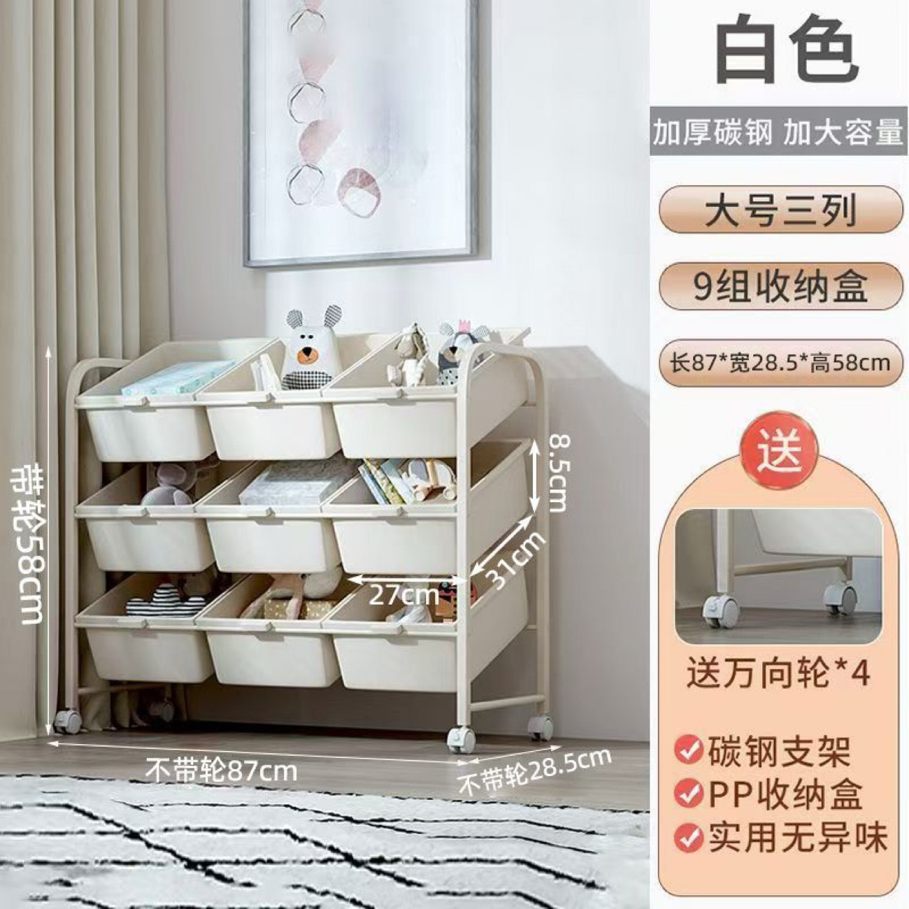 맞춤형 어린이 장난감 수납 선반 가정용 다층 이동식 수납 선반 대용량 카트형 수납 선반스토어 가기