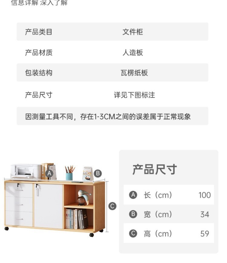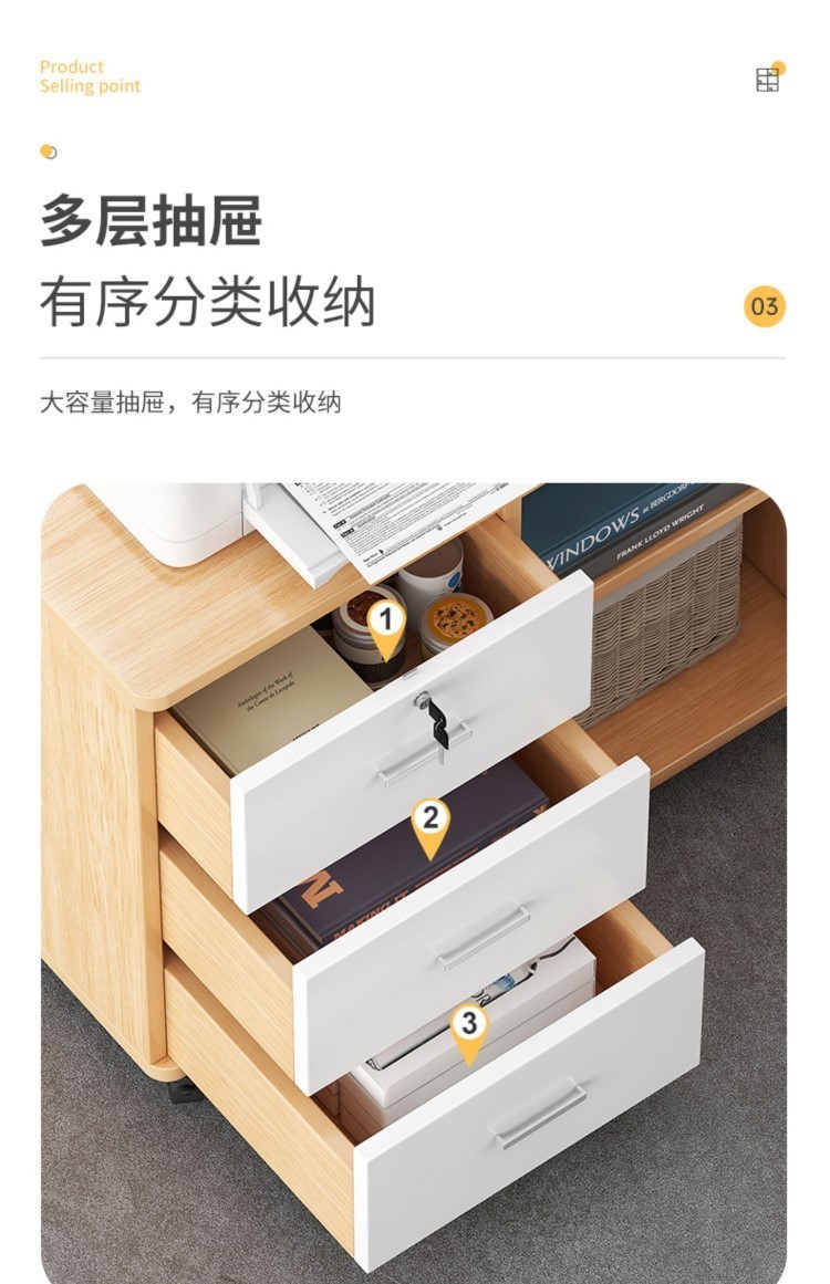 사무실 파일 캐비닛 책상 밑 수납 캐비닛 사무실 캐비닛 서랍이 있는 보조 캐비닛 목재 잠금 장치가 있는 낮은 캐비닛 수납 L&스토어 가기