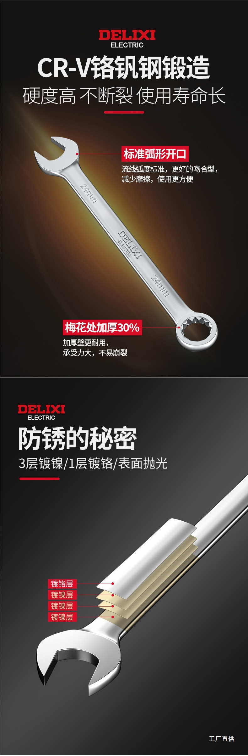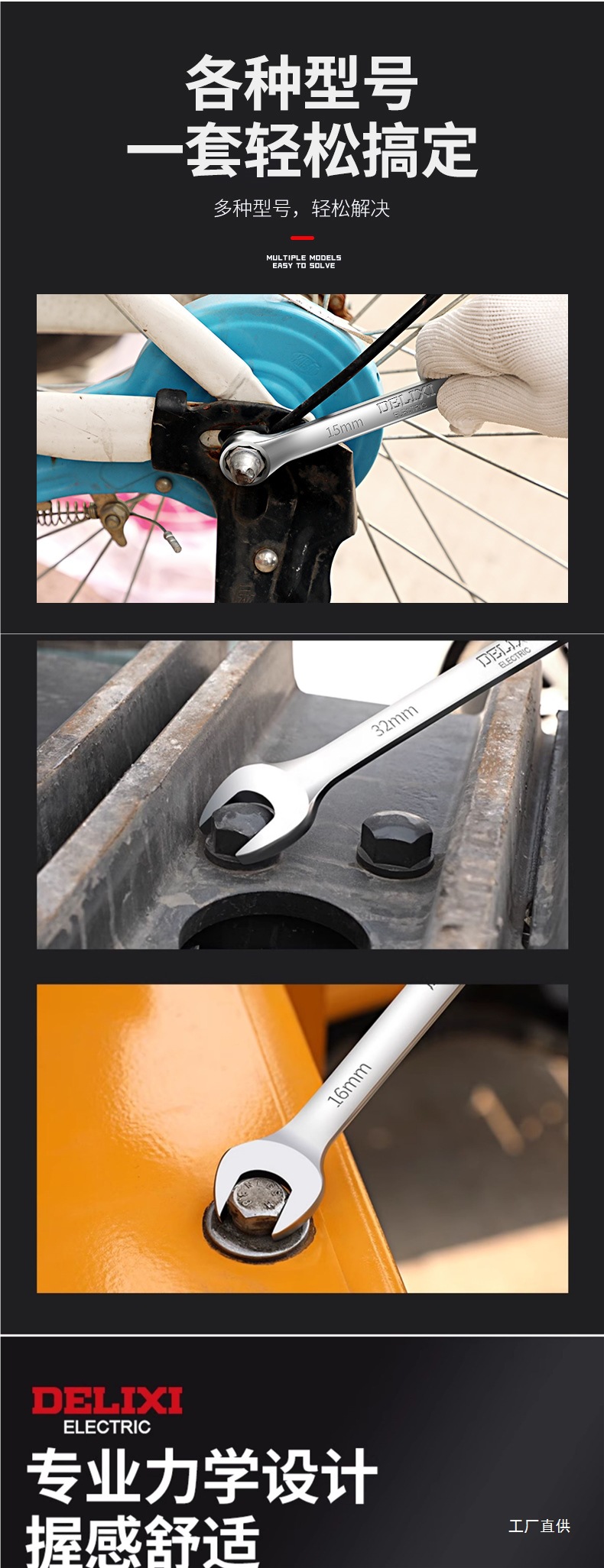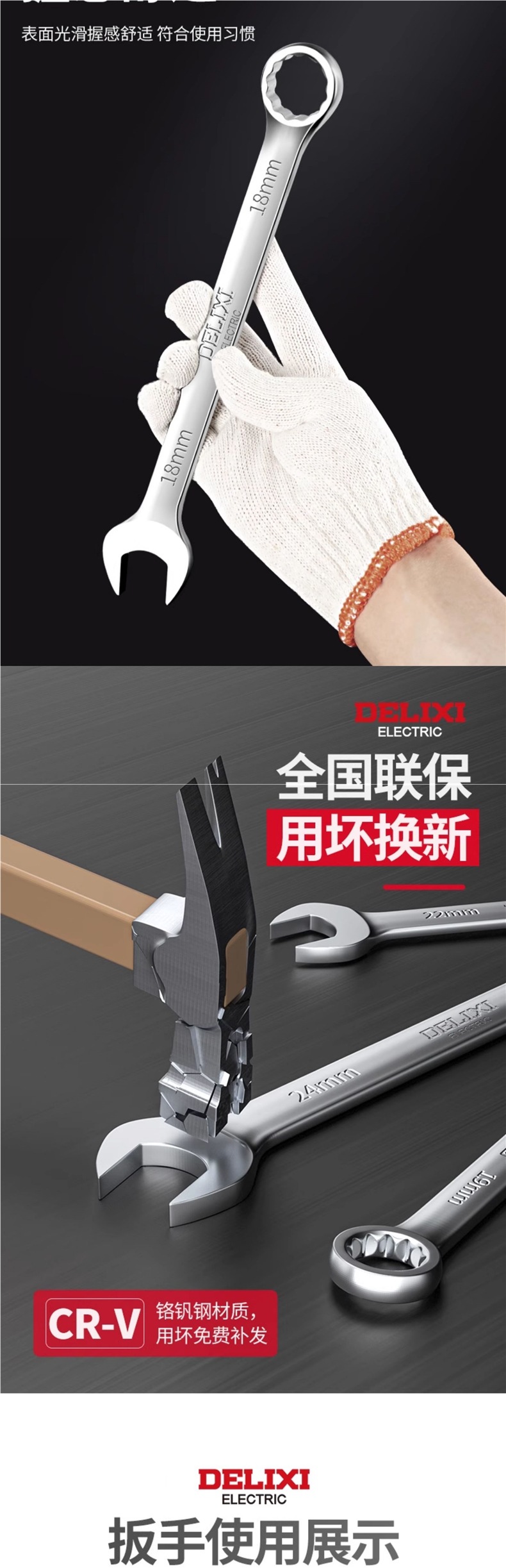 Delixi 이중 목적 렌치 No. 10 13 오픈 스템 렌치 포크 렌치 세트 렌치 도구