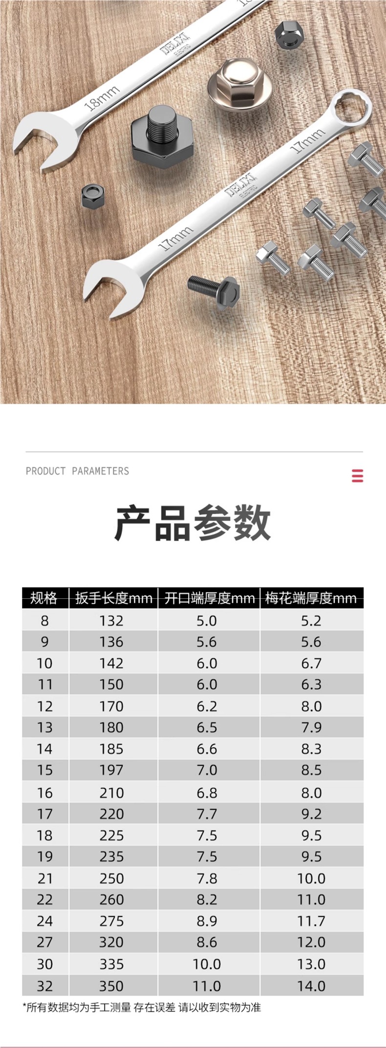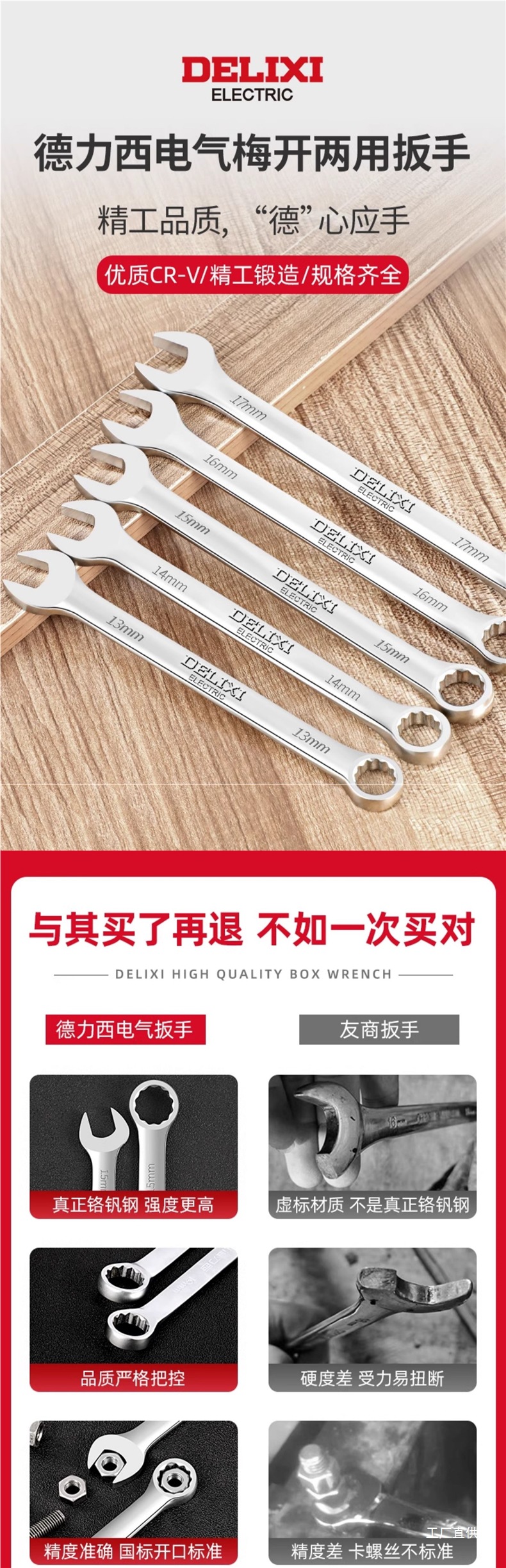 Delixi 이중 목적 렌치 No. 10 13 오픈 스템 렌치 포크 렌치 세트 렌치 도구스토어 가기