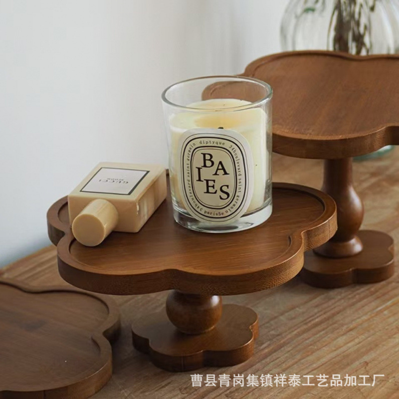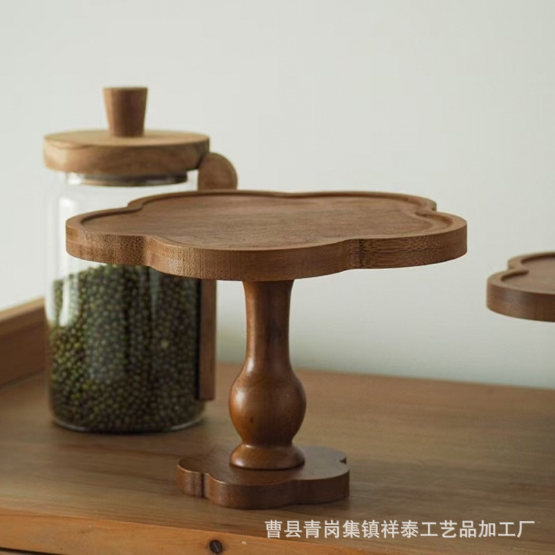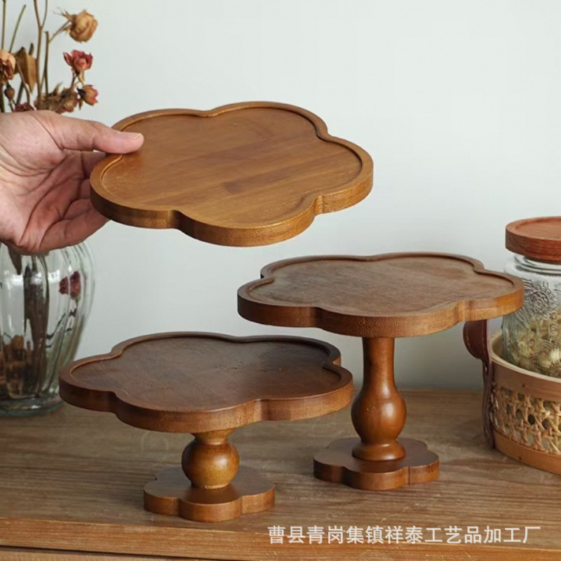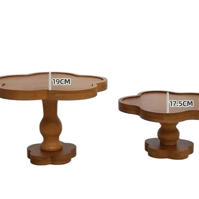 꽃잎 디너 플레이트 프렌치 플라워 하이 트레이 원목 페이스트리 디저트 테이블 세팅 나무 하이 컵케이크 플레이트