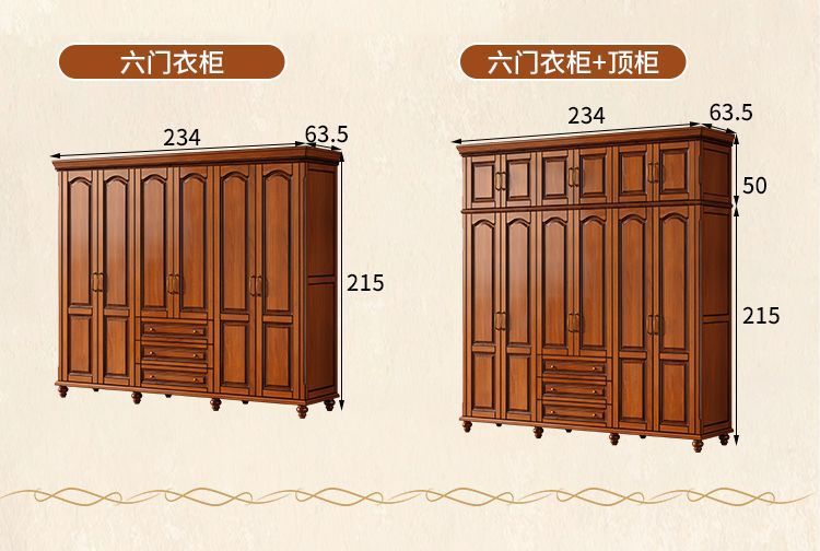 • [레트로월넛 컬러] 6도어 옷장 + 탑캐비닛