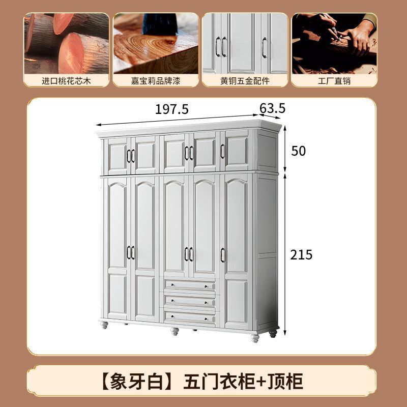현대적인 미니멀리스트 미국 복고풍 단단한 나무 옷장 흰색 3, 4, 5 도어 서랍 상단 캐비닛 침실 두꺼운 옷장 레이어