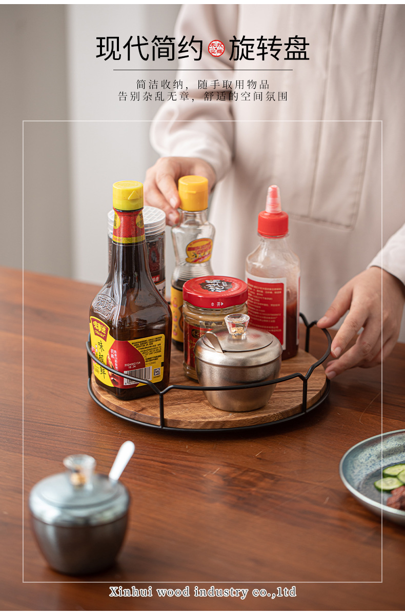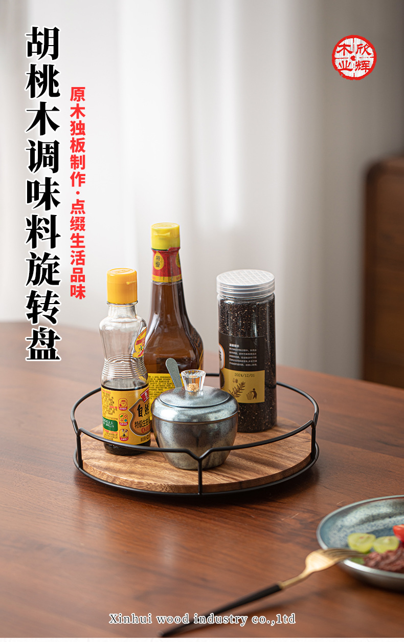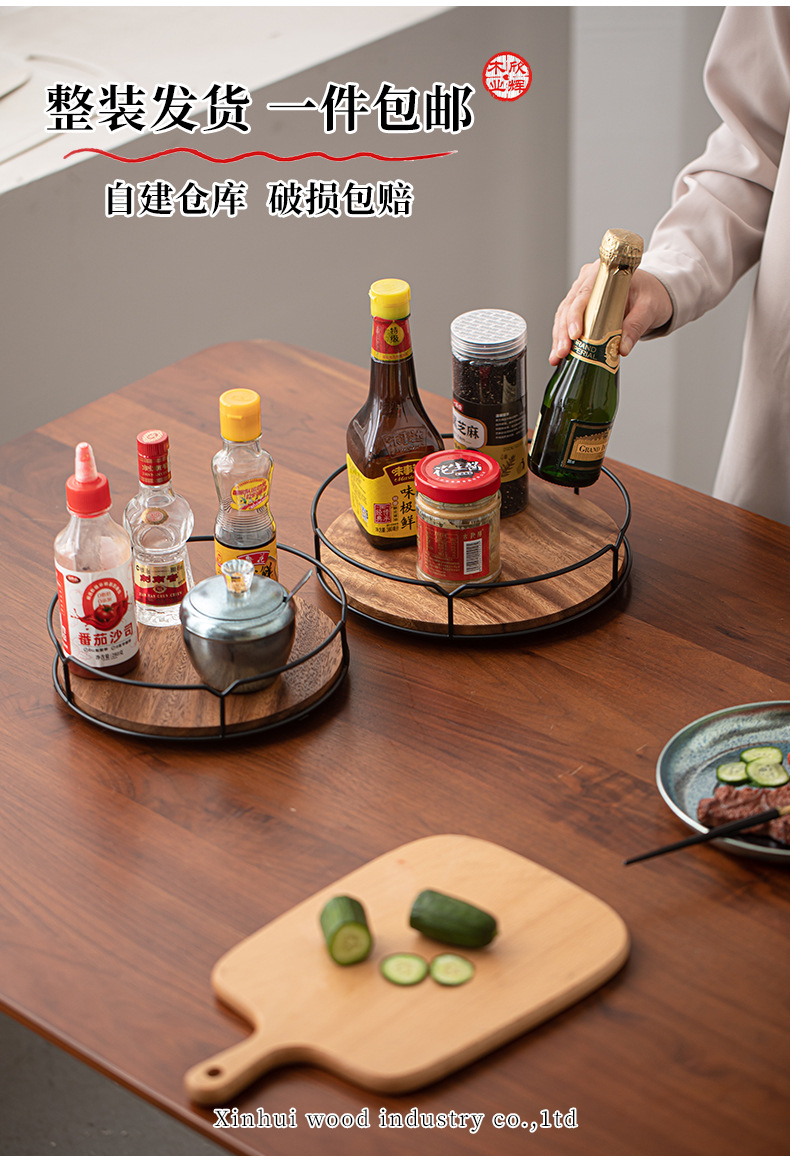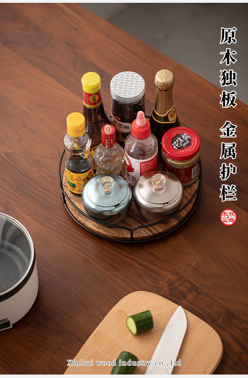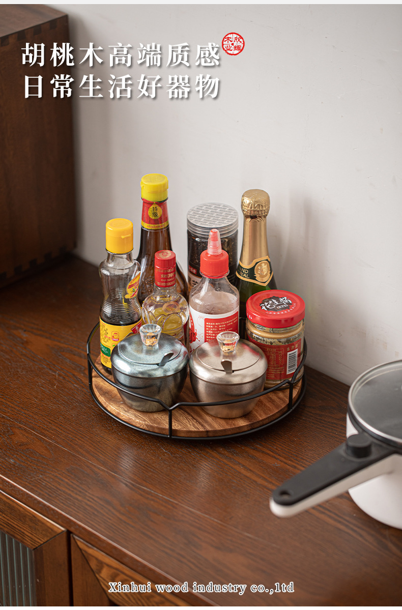 조미료 보관함 호두나무 탁상용 원목 회전식 보관함 대형 나무 주방 보관함 회전랙