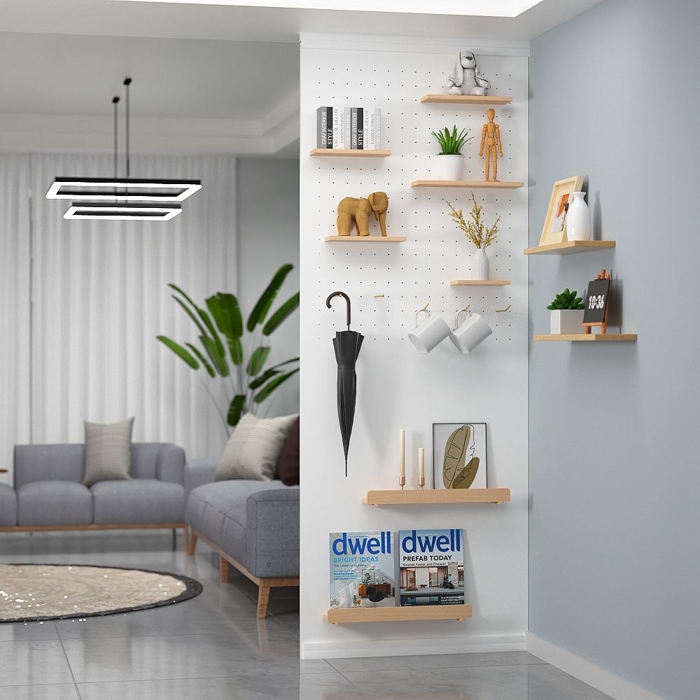 홀 보드 단단한 나무 벽 선반 나무 디스플레이 랙 벽걸이 책장 교수형 보드 벽 칸막이 보관 랙