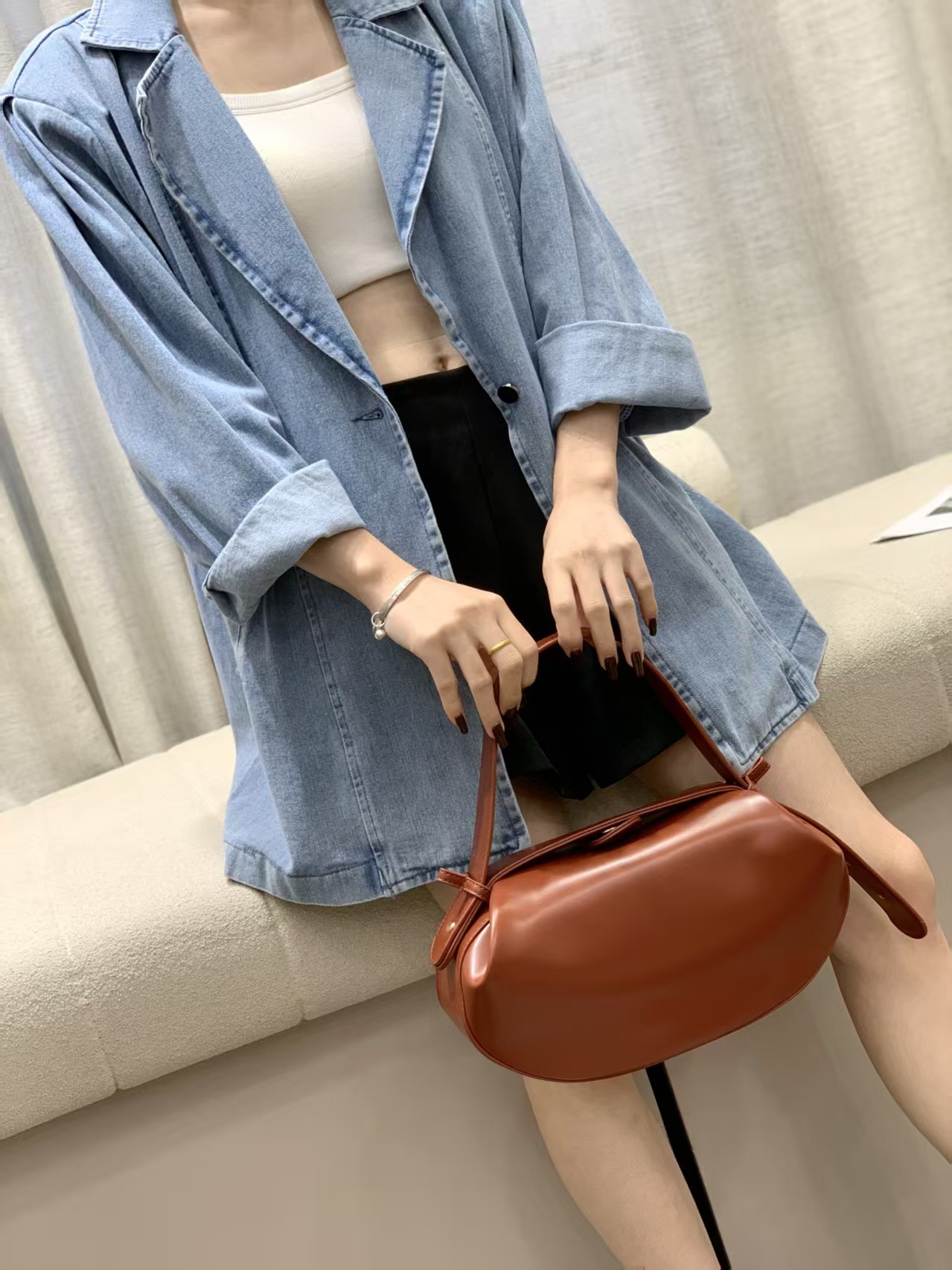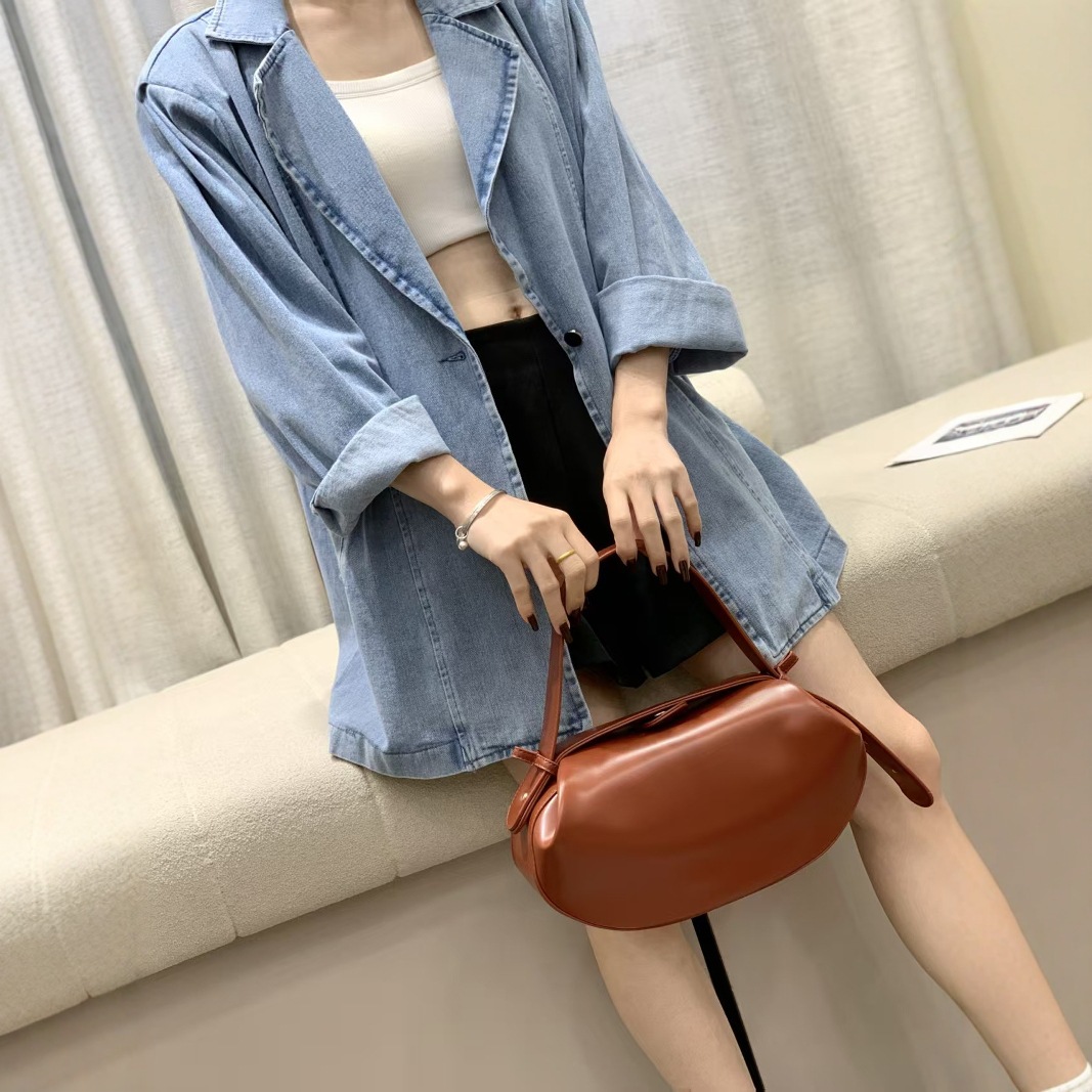 국경을 넘나드는 새로운 스타일의 휴대용 솔리드 컬러 바게트 여성용 가방 2025 여름 대각선 캐주얼 다용도 입체 겨드랑이 작은 라운드 여성용 가방스토어 가기
