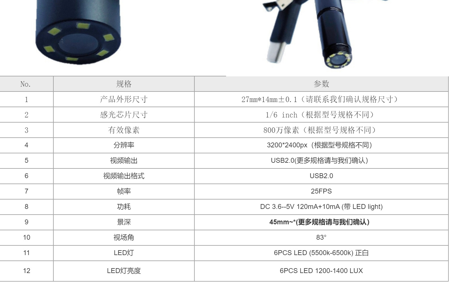 • 2592x1944px 산업용 내시경 카메라 모듈